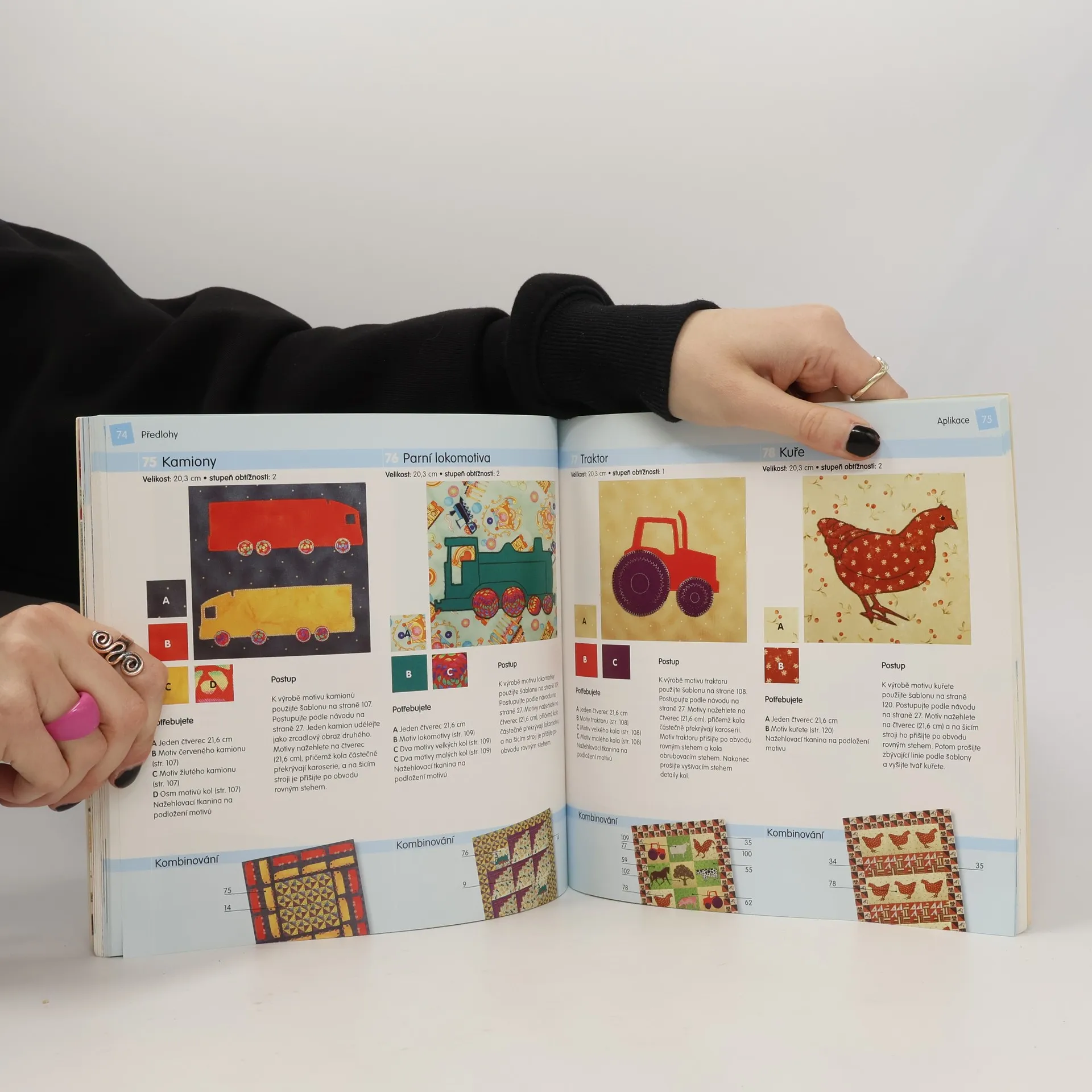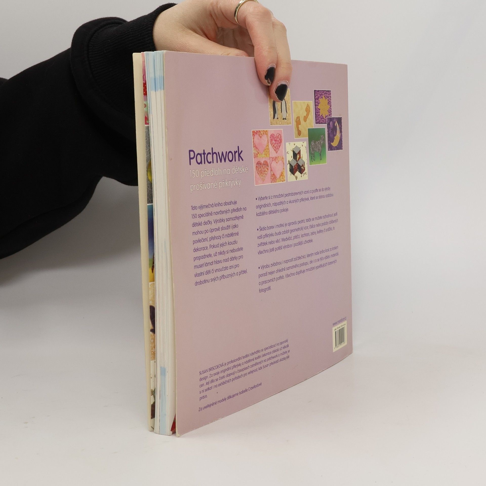 Celkem 150 návodů na výrobu dětských patchworkových přikrývek v různých barvách, s různými geometrickými vzory i dětskými motivy (medvídci, srdíčka, květiny, psaníčka apod.). Kniha vysvětluje všechny patchworkové a aplikační techniky. Obsahuje mnoho předloh, návrhů i kombinací, doplněných fotografiemi. Návod s názornými ilustracemi informuje krok za krokem, jak vytvářet dětské prošívané přikrývky. Dále informuje o pomůckách, vzorech, látkách atd. Poslední část knihy slouží jako přehled aplikačních šablon.