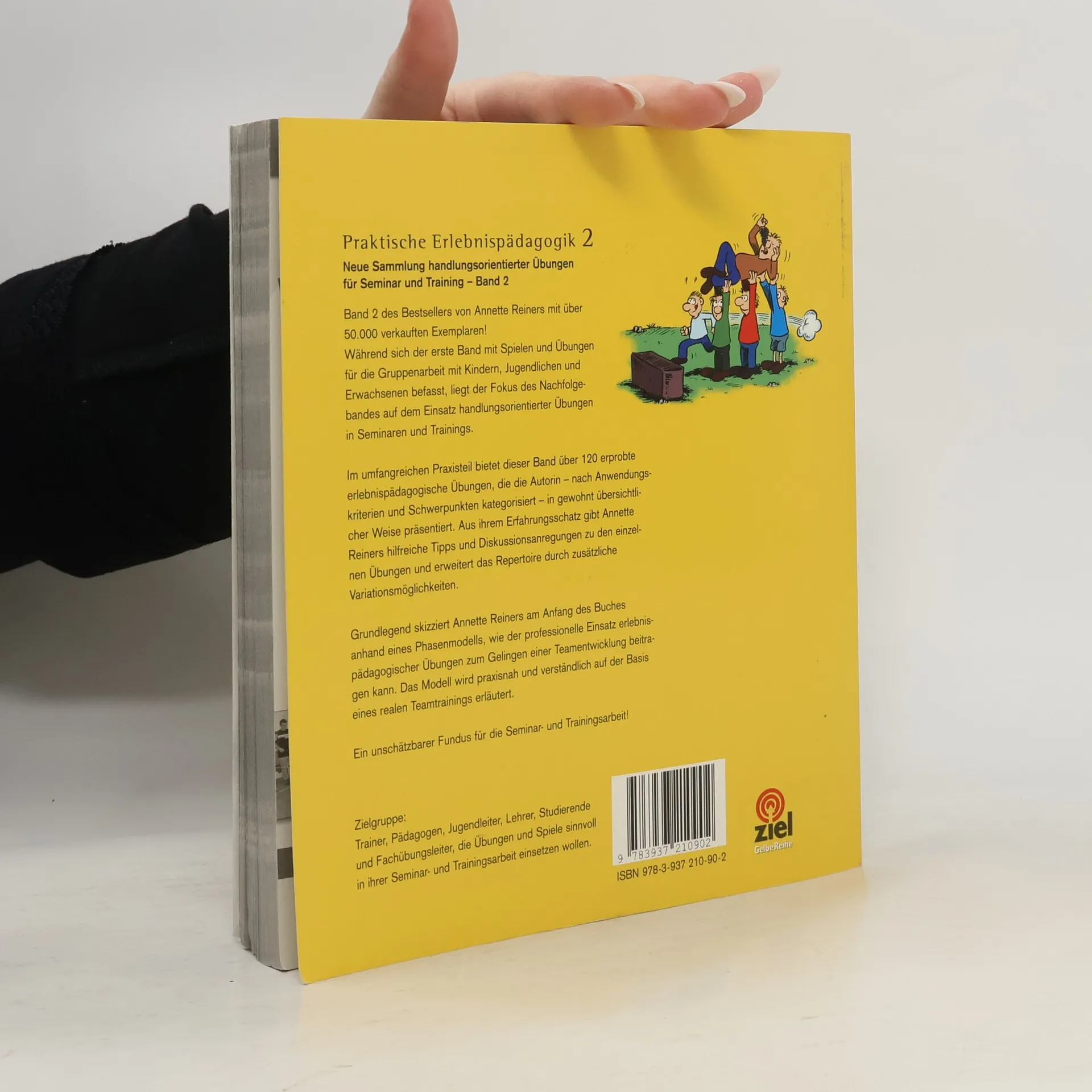 Band 2 des Bestsellers von Annette Reiners! Während sich der erste Band mit Spielen und Übungen für die Gruppenarbeit mit Kindern, Jugendlichen und Erwachsenen befasst, konzentriert sich der Nachfolgeband auf handlungsorientierte Übungen für Seminare und Training. Im umfangreichen Praxisteil bietet dieser Band über 120 erprobte erlebnispädagogische Übungen, die die Autorin – nach Anwendungskriterien und Schwerpunkten kategorisiert – in gewohnt übersichtlicher Weise präsentiert. Aus ihrem Erfahrungsschatz gibt Annette Reiners hilfreiche Tipps und Diskussionsanregungen zu den einzelnen Übungen erweitert das Repertoire durch zusätzliche Variationsmöglichkeiten. Grundlegend skizziert Annette Reiners am Anfang des Buches anhand eines Phasenmodells, wie der professionelle Einsatz erlebnispädagogischer Übungen zum Gelingen einer Teamentwicklung beitragen kann. Das Modell wird praxisnah und verständlich auf Basis eines realen Teamtrainings erläutert. Ein unschätzbarer Fundus für die Seminar- und Trainingsarbeit!