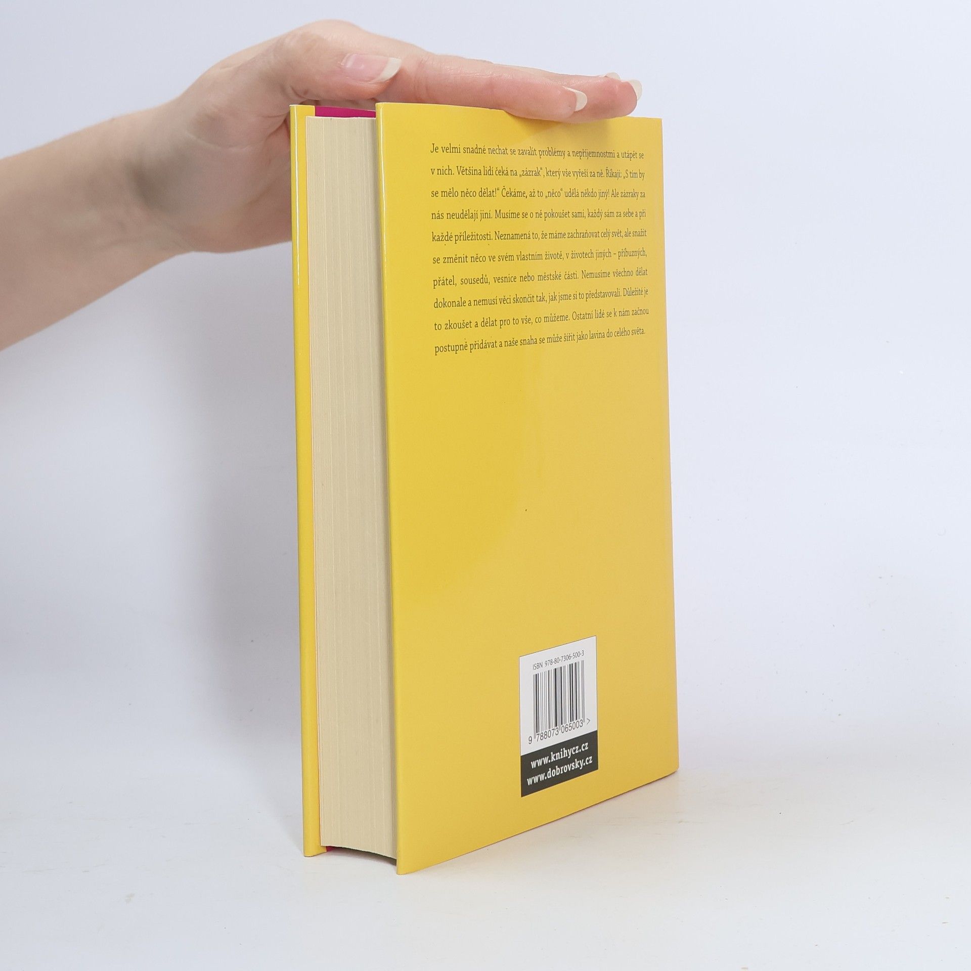 50 lekcí o tom, jak "učinit nemožné možným" Je velmi snadné nechat se zavalit problémy a nepříjemnostmi a utápět se v nich. Většina lidí čeká na "zázrak", který vše vyřeší za ně. Říkají: "S tím by se mělo něco dělat!" Čekáme, až něco udělá někdo jiný! Ale zázraky za nás neudělají jiní. Musíme se o ně pokoušet sami, každý sám za sebe a při každé příležitosti. Neznamená to, že máme zachraňovat celý svět, ale snažit se změnit něco ve svém vlastním životě, v životech jiných - příbuzných, přátel, sousedů, vesnice nebo městské části. Nemusíme všechno dělat dokonale a nemusí věci skončit tak, jak jsme si to představovali. Důležité je to zkoušet a dělat pro to vše, co můžeme. Ostatní lidé se k nám začnou postupně přidávat a naše snaha se může šířit jako lavina do celého světa. Pak lze i svět změnit k lepšímu.