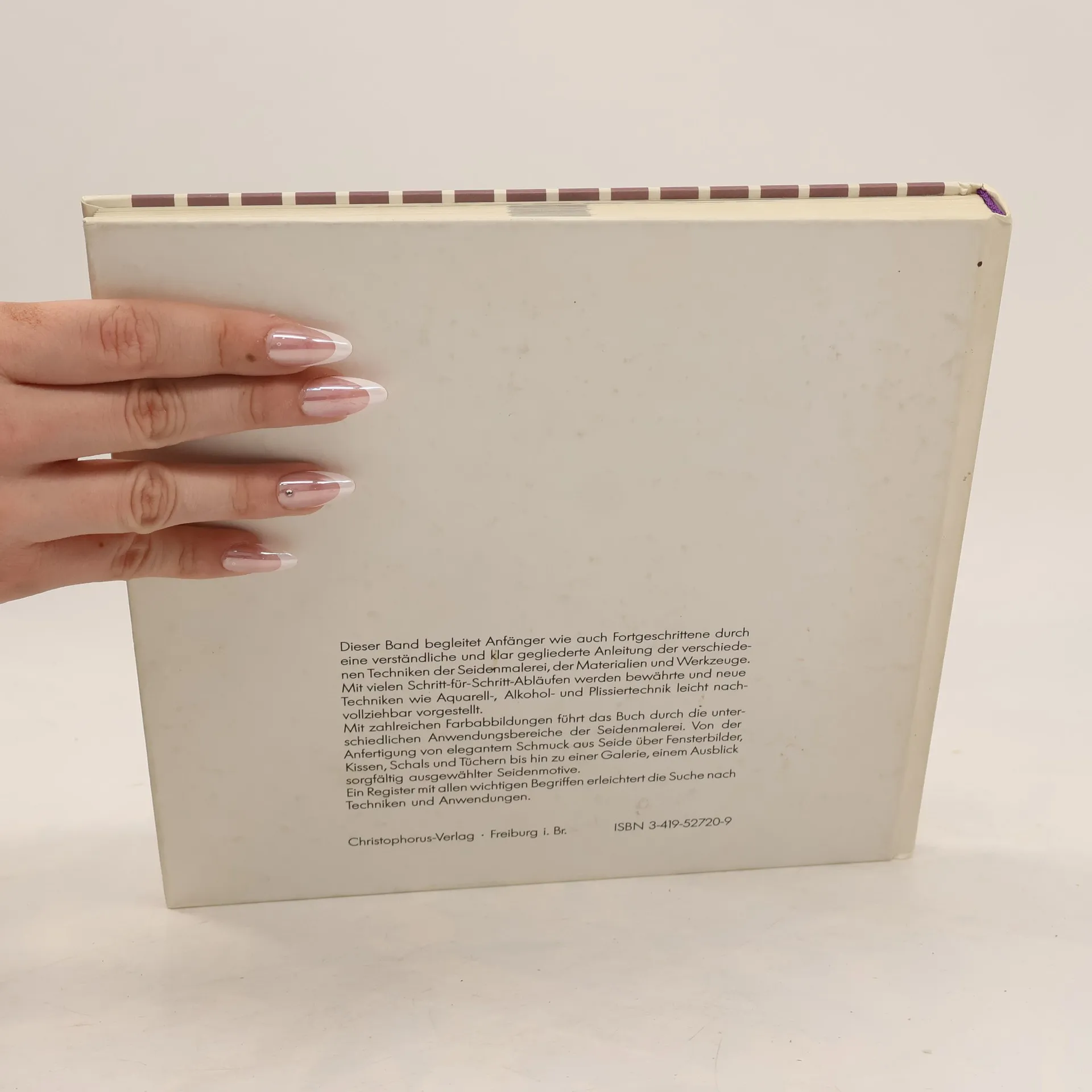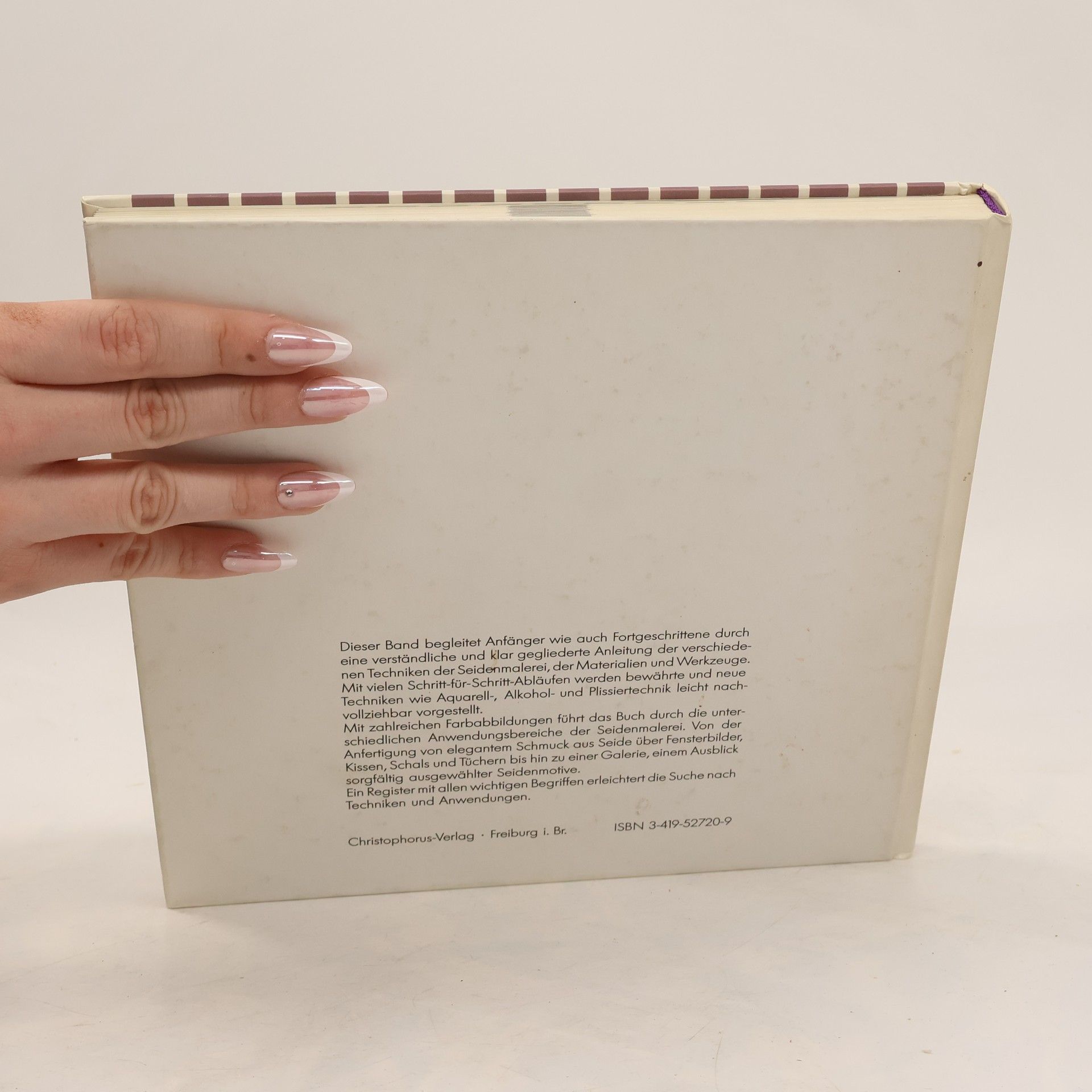 Verlagskompendium, das aus bisher 20 Veröffentlichungen der Brunnenreihe und der Reihe Hobby & Werken die verschiedensten Techniken der Seidenmalerei und ihre Anwendungen zur Herstellung von Gebrauchsgegenständen zusammenfasst; reich illustriert.
