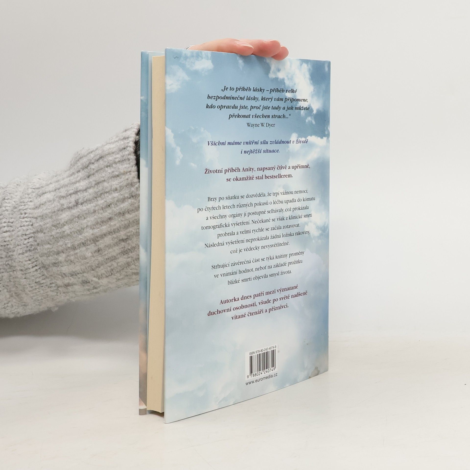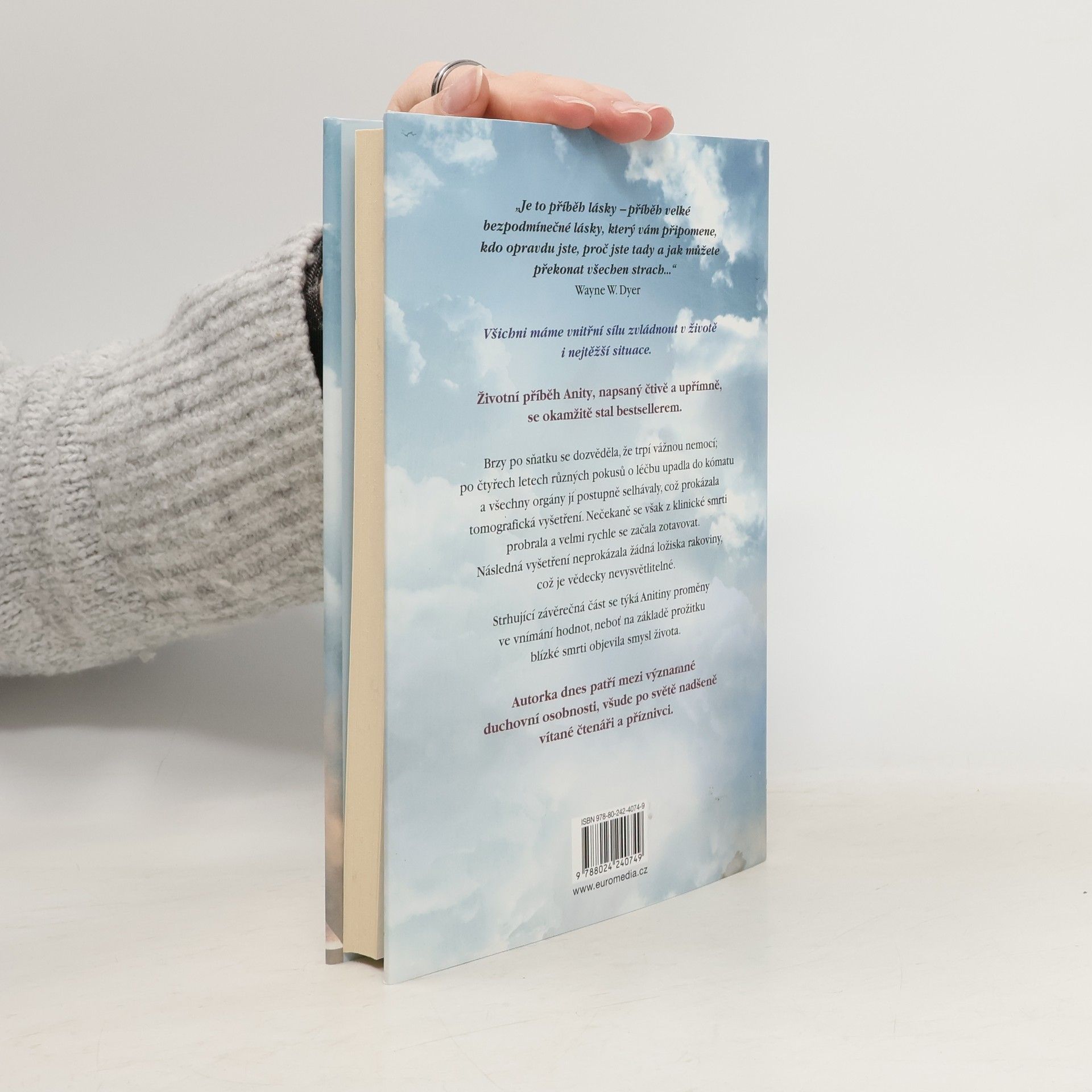 Životní příběh Anity, napsaný čtivě a upřímně, se okamžitě stal bestsellerem a autorka dnes patří mezi významné osobnosti, nadšeně vítané čtenáři po celém světě. Brzy po sňatku u ní diagnostikovali rakovinu, po čtyřech letech různých pokusů o léčbu upadla do kómatu a všechny orgány jí postupně selhávaly, což prokázala tomografická vyšetření. Nečekaně se však z klinické smrti probrala a velmi rychle se začala zotavovat. Následná vyšetření neprokázala žádná ložiska rakoviny, což je zcela neuvěřitelné a vědecky nevysvětlitelné. Strhující závěrečná část se týká autorčiny proměny ve vnímání hodnot, neboť na základě prožitku blízké smrti objevila smysl života. Anita Moorjani ve své inspirativní autobiografii líčí, jak jí po čtyřech letech boje se zákeřnou nemocí tělo vypovědělo službu. Dostala se do neobyčejného stavu zážitku blízké smrti a v něm si uvědomila svou vlastní hodnotu… i skutečnou příčinu své nemoci. Když nabyla vědomí, její stav se zlepšoval takovou rychlostí, že ji za několik týdnů bez jakýchkoli známek rakoviny propustili z nemocnice. Vyrůstala v tradiční hinduistické rodině uprostřed převážně čínské a britské společnosti a odmalička ji silně ovlivňovaly nejrůznější kulturní a náboženské zvyklosti.