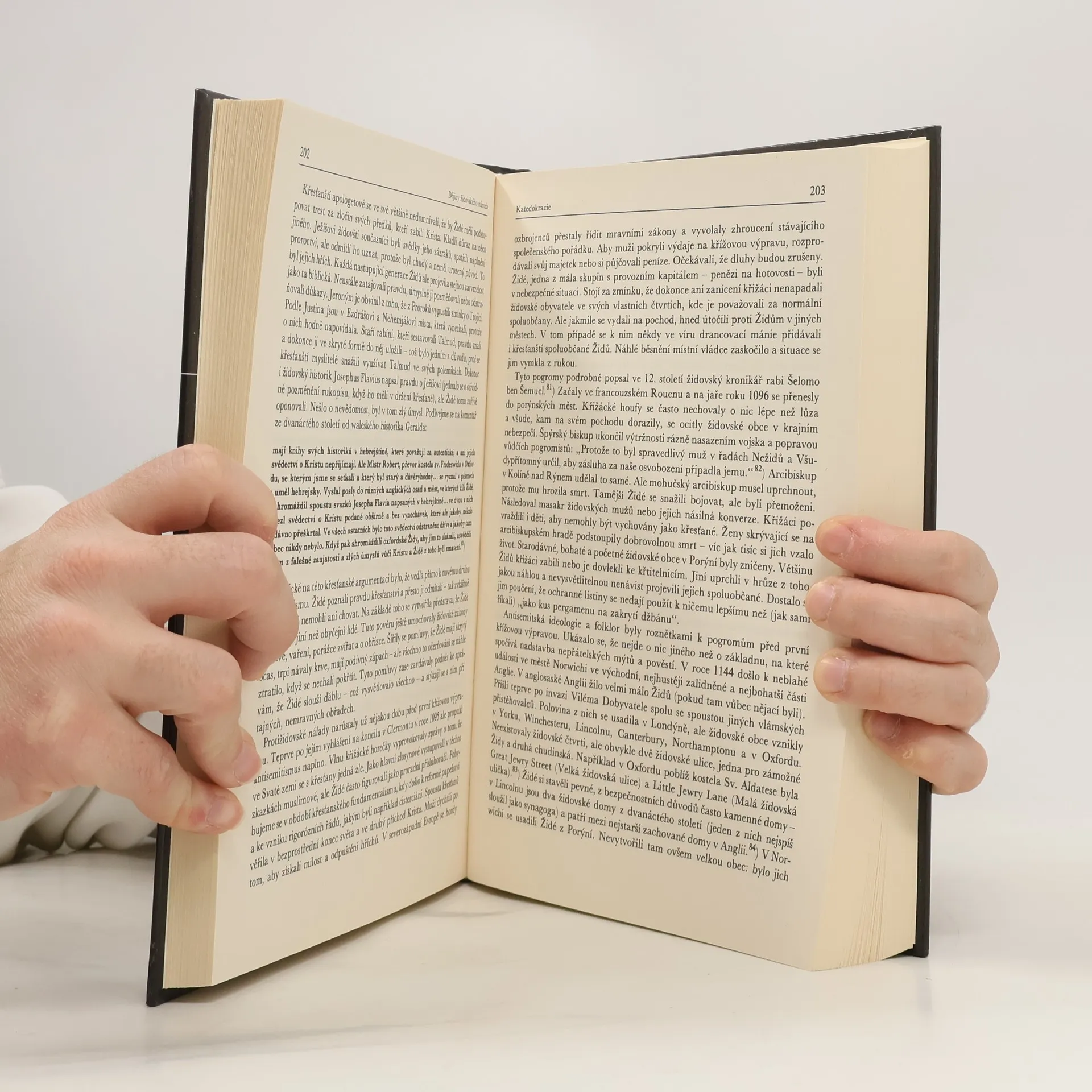 Dějiny Židů jsou svého druhu dějiny světa, ovšem viděné pod velmi neobvyklým úhlem, očima inteligentní a vzdělané oběti. Johnsonovi však jde ještě o víc: ukázat podstatu samé historie a křesťanské civilizace. Žádný národ netrval nikdy s větší neochvějností než Židé na tom, že dějiny mají účel a lidstvo osud. Od nepaměti se drželi této víry tváří v tvář strašnému utrpení. Jejich víra a osud daly vzniknout mnoha velkolepým projektům pro lidstvo, vzniklým jak z božské inspirace, tak vytvořených člověkem. S jistou nadsázkou lze proto říci, že Židé stojí v samém středu věčného úsilí dát lidskému životu vznešený záměr. Tato kniha je nejen monumentální kronikou v čase (4 000 let) a prostoru (celý svět), ale syntézou i dramatem. Zároveň nám dává jakoby nahlédnout na odvrácenou stranu naší vlastní rozporuplné civilizace.