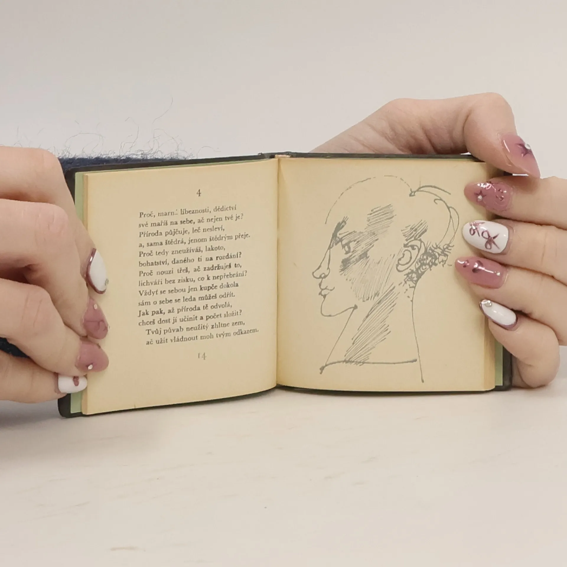 Kolibří vydání Shakespearových Sonetů vázáno v kůži.