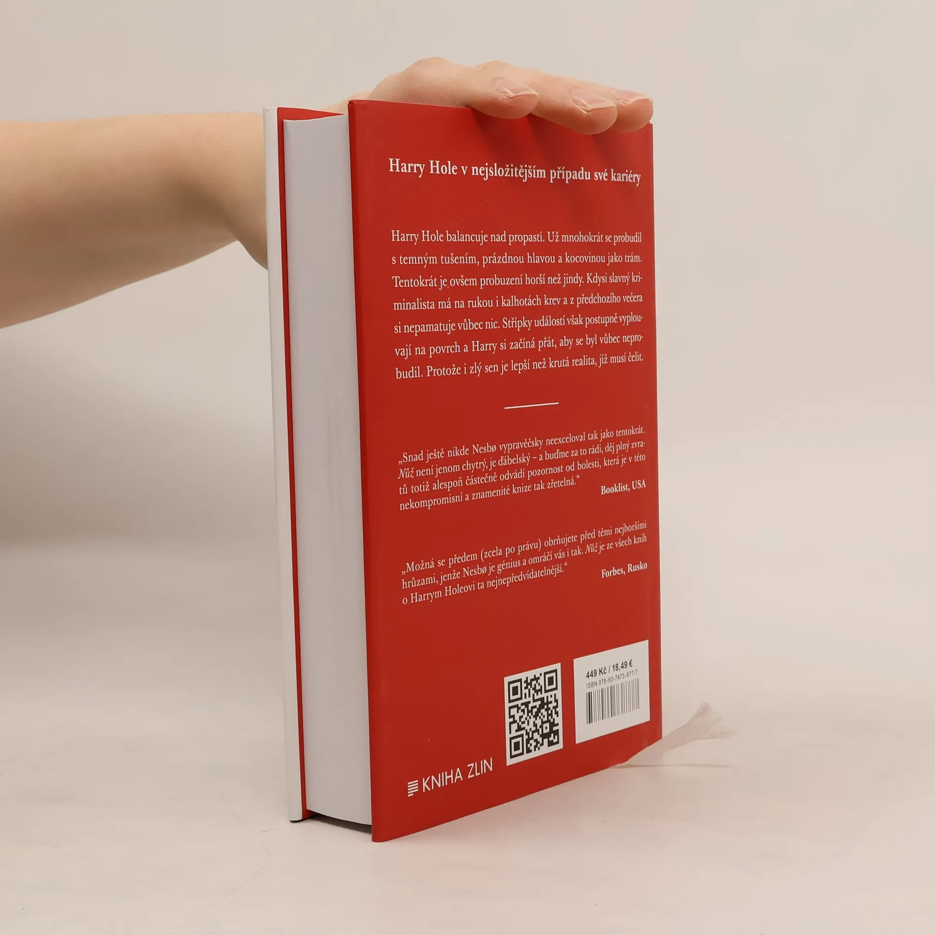 Harry Hole se už mnohokrát probudil s temným tušením, prázdnou hlavou a kocovinou jako trám. Tentokrát je ovšem probuzení ještě horší než jindy. Kdysi slavný kriminalista má na rukou i kalhotách krev a až po chvíli si vybaví, že ztratil všechno. To tam je idylické manželství s Ráchel, ta tam je zajímavá práce vyučujícího na policejní akademii. Jediné, co mu zbylo, je věrný přítel Jim Beam. A také místo v kanceláři vedle Trulse Berntsena, kde jakožto bývalá legenda smí na přímluvu svého šéfa aspoň třídit papíry. Co si však Harry vybavit nedokáže, jsou události včerejšího večera v baru Jealousy. Jednotlivé střípky vyplouvají na povrch jen pomaloučku, skládají se však ve strašlivý obrázek. Harry si začíná přát, aby se byl vůbec neprobudil, protože i zlý sen je lepší než krutá realita, jíž musí čelit. Ve chvíli, kdy si myslí, že už se dostal na samé dno a víc ztratit nemůže, se navíc objeví jeho dávný nepřítel Svein Finne. Harry má dvě možnosti: skoncovat se vším hned, anebo se ještě aspoň dočasně vzchopit.