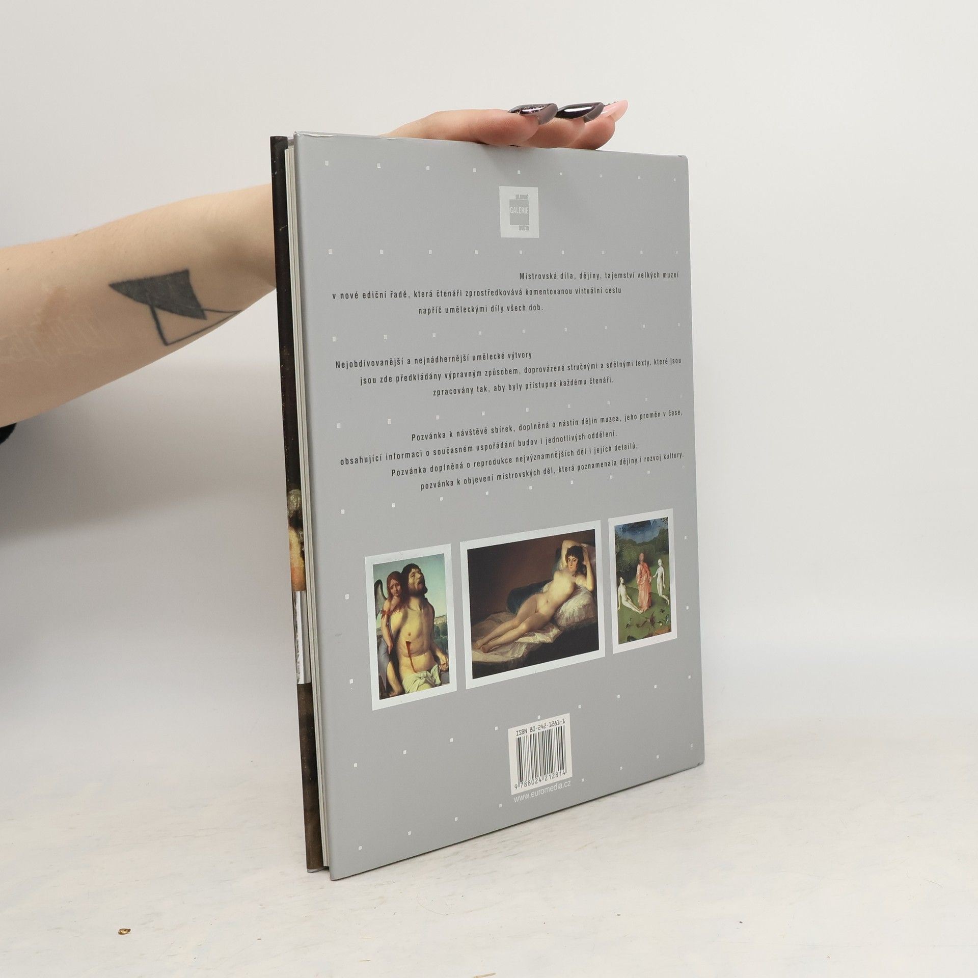 Mistrovská díla, dějiny, tajemství velkých muzeí v nové a původní ediční řadě, která čtenáři zprostředkovává komentovanou, virtuální cestu napříč uměleckými díly všech dob. Nejobdivovanější a nejnádhernější umělecké výtvory jsou zde předkládány výpravným způsobem, doprovázené stručnými a sdělnými texty, které jsou zpracovány tak, aby byly přístupné každému čtenáři. Pozvánka k návštěvě sbírek, doplněná o nástin dějin muzea, jeho proměn v čase, obsahující informaci o současném uspořádání budov i jednotlivých oddělení. Pozvánka doplněná o reprodukce nejvýznamnějších děl i jejich detailů, pozvánka k objevení mistrovských děl, která poznamenala dějiny i rozvoj kultury.... celý text