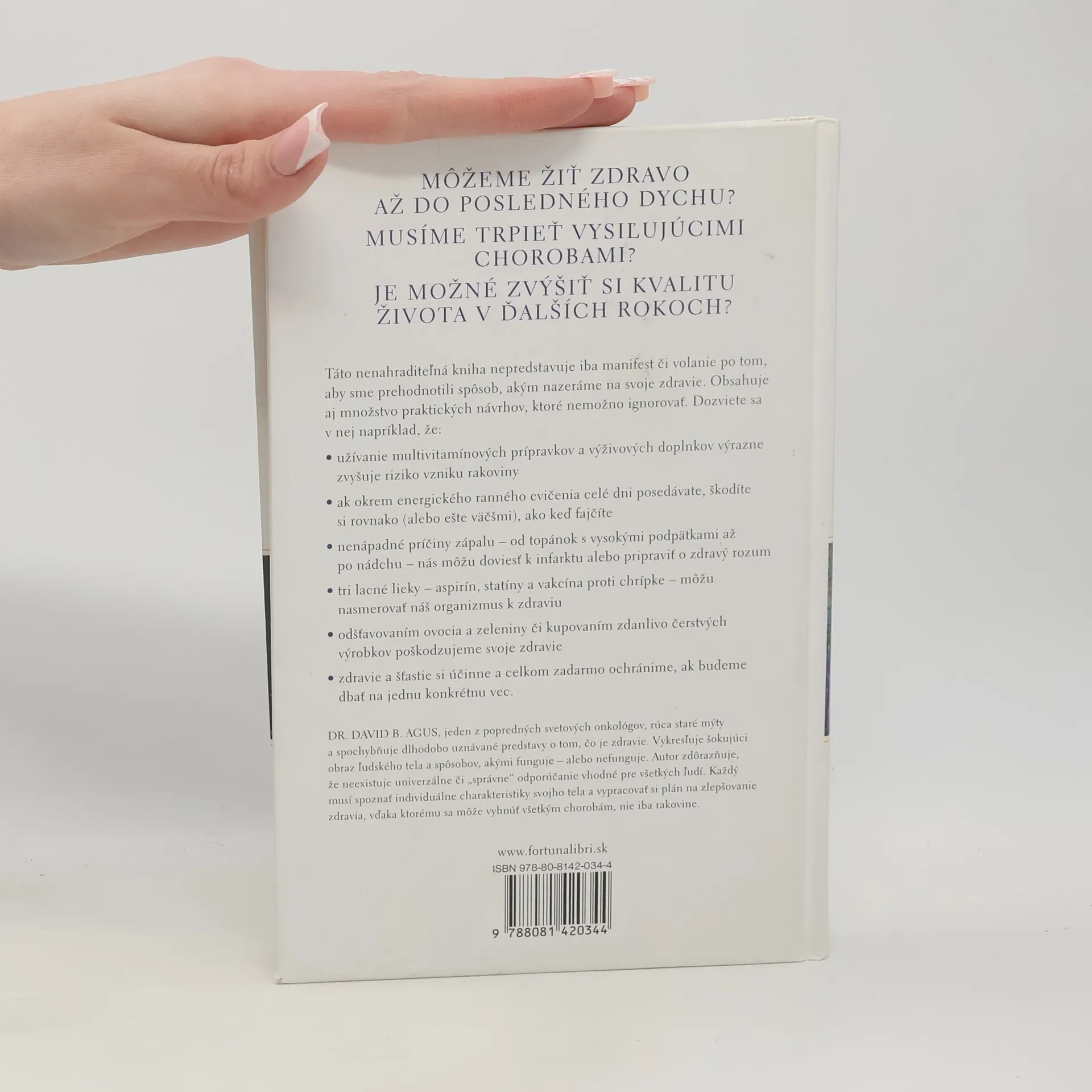 Táto nenahraditeľná kniha nepredstavuje iba manifest či volanie po tom, aby sme prehodnotili spôsob, akým nazeráme na svoje zdravie.Obsahuje aj množstvo praktických návrhov, ktoré nemožno ignorovať. Dozviete sa v nej napríklad, že: užívanie multivitamínových prípravkov a výživových doplnkov výrazne zvyšuje riziko vzniku rakoviny ak okrem energického ranného cvičenia celé dni posedávate, škodíte si rovnako (alebo ešte väčšmi), ako keď fajčíte nenápadné príčiny zápalu od topánok s vysokými podpätkami až po nádchu nás môžu doviesť k infarktu alebo pripraviť o zdravý rozum tri lacné lieky aspirín, statíny a vakcína proti chrípke môžu nasmerovať náš organizmus k zdraviu odšťavovaním ovocia a zeleniny či kupovaním zdanlivo čerstvých výrobkov poškodzujeme svoje zdravie zdravie a šťastie si účinne a celkom zadarmo ochránime, ak budeme dbať na jednu konkrétnu vec.