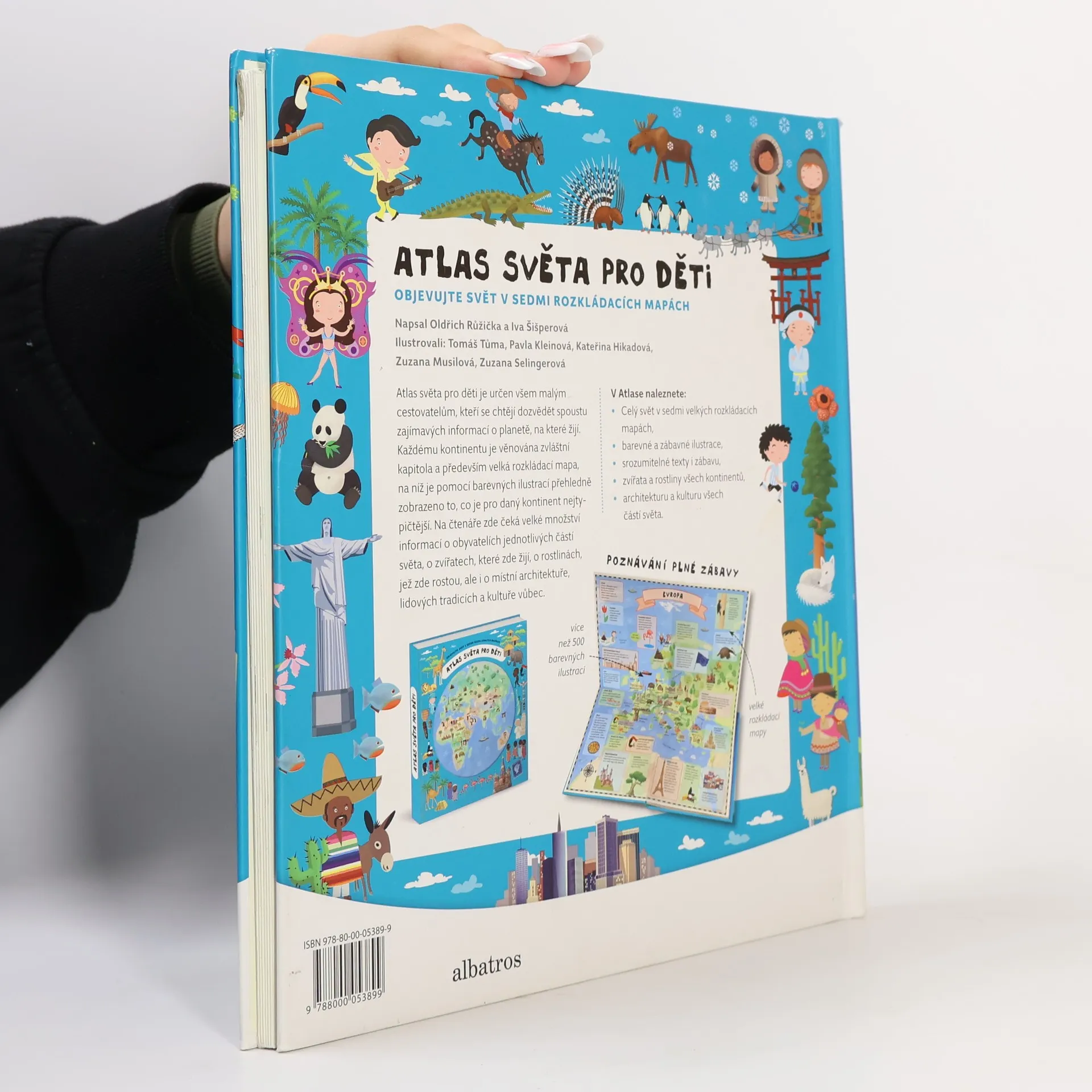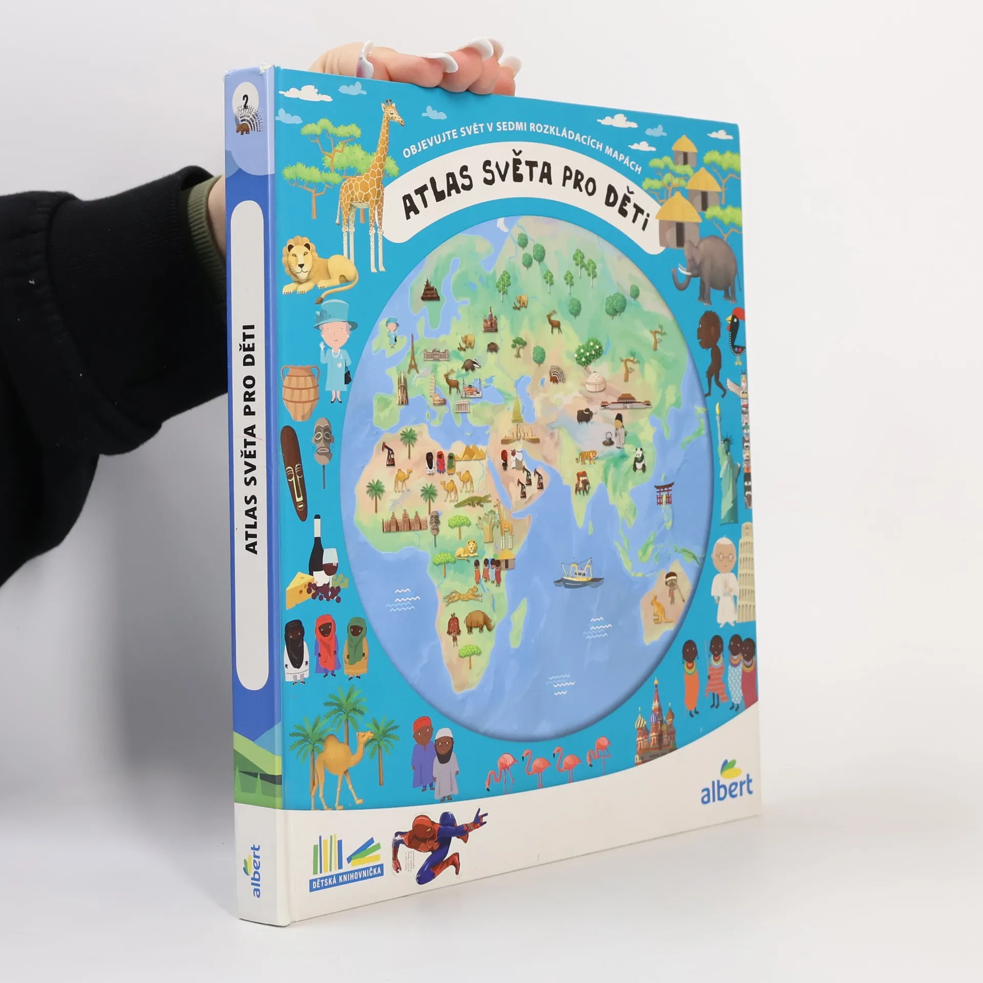 Atlas světa pro děti je určen všem malým cestovatelům, kteří se chtějí dozvědět spoustu zajímavých informací o planetě, na které žijí. Každému kontinentu je věnována zvláštní kapitola a především velká rozkládací mapa, na níž je pomoci barevných ilustrací přehledně zobrazeno to, co je pro daný kontinent nejtypičtější. Na čtenáře zde čeká velké množství informací o obyvatelích jednotlivých částí světa, o zvířatech, které zde žijí, o rostlinách, jež zde rostou, ale i o místní architektuře, lidových tradicích a kultuře vůbec. V Atlase naleznete celý svět v sedmi velkých rozkládacích mapách, patnáct vložených sešitků plných dalších podrobností a informací, barevné a zábavné ilustrace, srozumitelné texty i zábavu, zvířata a rostliny všech kontinentů, architekturu a kulturu všech částí světa.