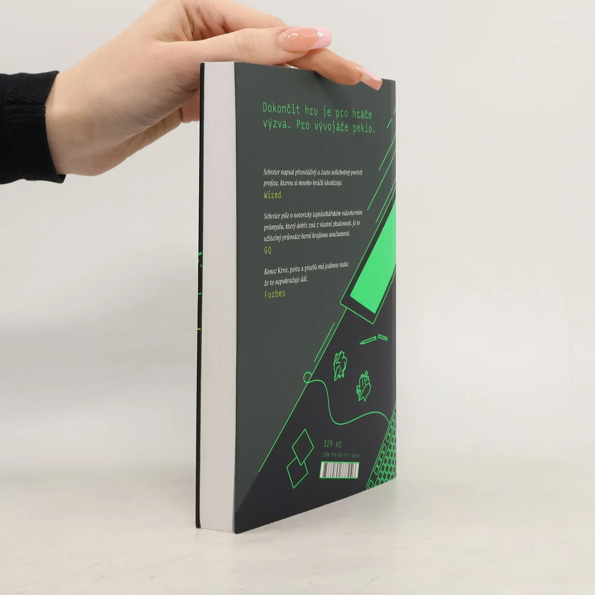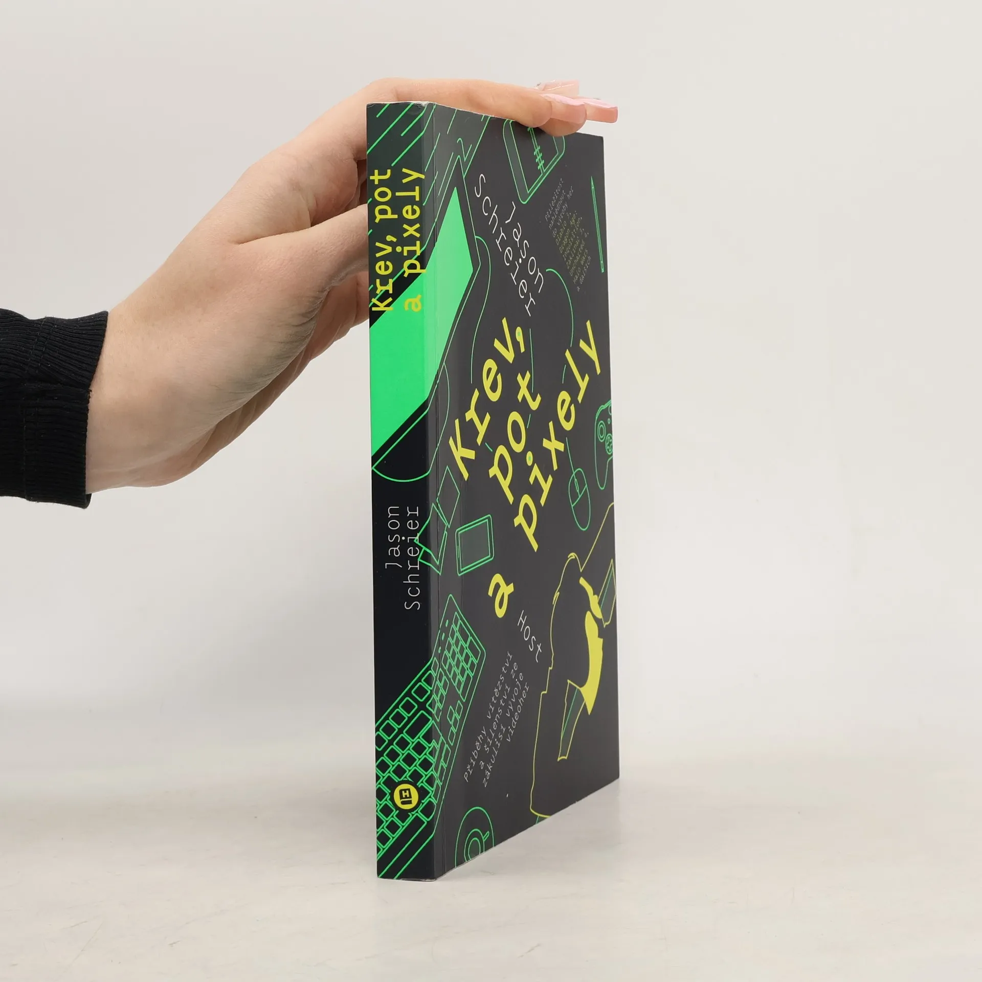 Dokončit hru je pro hráče výzva. Pro vývojáře peklo.Výroba dnešních herních blockbusterů si v ničem nezadá s jejich filmovými protějšky. Kromě stamilionových rozpočtů si vývoj videoher žádá především obrovské tvůrčí a technické nasazení vývojářů, kteří často pracují na hranici finančního i osobního zhroucení. A je lhostejné, zda jde o geniální jednotlivce někde v garáži, nebo stohlavé týmy.Novinář Jason Schreirer vyzpovídal stovky profesionálů z velkých studií, jako jsou Bioware, Blizzard nebo LucasArts, i malé nezávislé týmy. V Krvi, potu a pixelech bere čtenáře na výpravu do zákulisí videoherního světa. Během ní ukazuje, kolik dřiny stojí za každým napínavým questem, zábavným levelem a přiměřeně neporazitelným bossem. Kolik uměleckých výzev, technických překážek, tržních požadavků a korporátních výmyslů musí vývojáři překonat. A že za dobrou hru se často platí i zdravím a osobním životem.