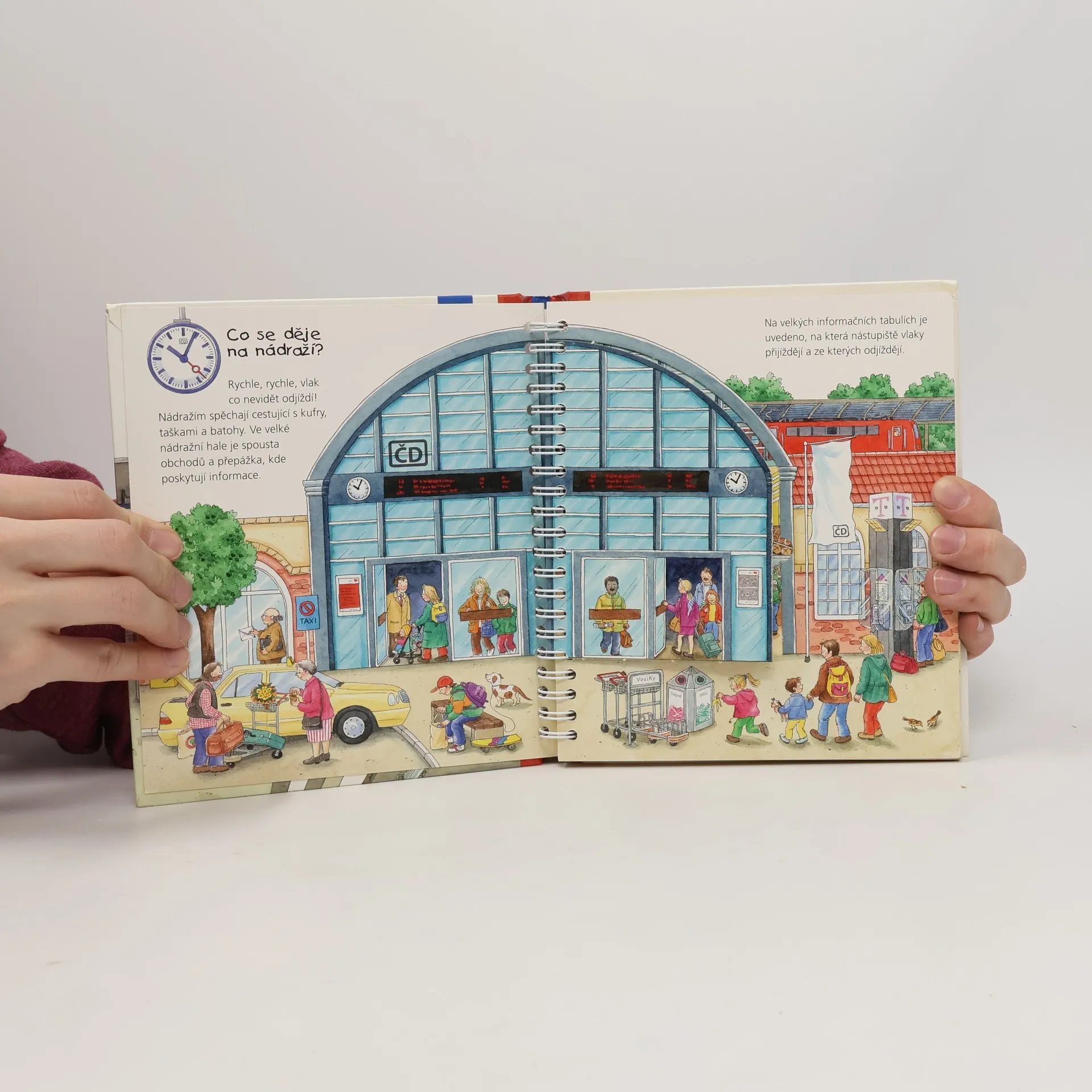 Den za dnem, stránku za stránkou a obrázek za obrázkem poznáváme a objevujeme svět. Tentokrát je knížka-hračka spíš pro kluky a jejich tatínky, kniha plná vlaků a vláčků, nádraží a informací kolem nich.