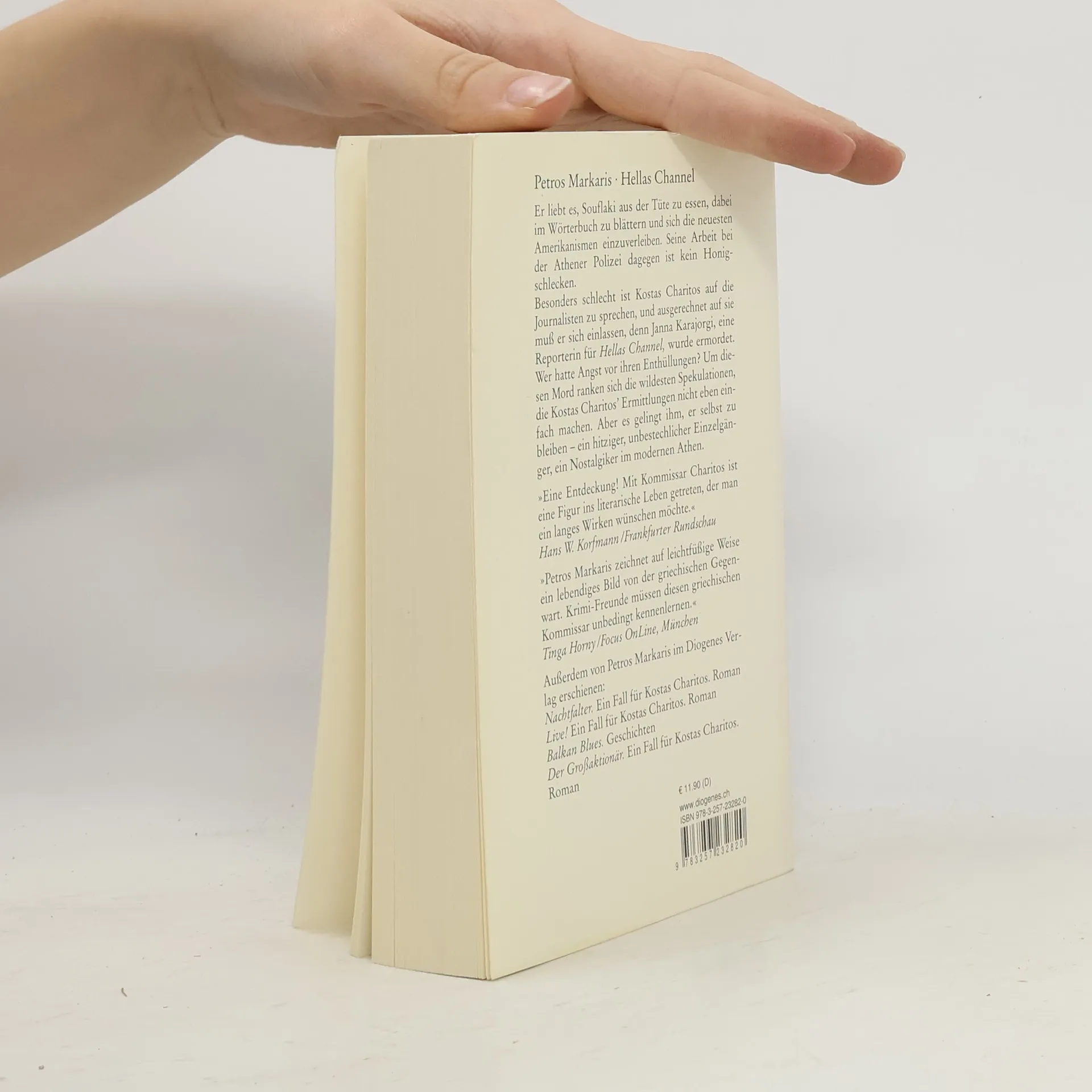 Er liebt es, Souflaki aus der Tüte zu essen, dabei im Wörterbuch zu blättern und sich die neuesten Amerikanismen einzuverleiben. Seine Arbeit bei der Athener Polizei dagegen ist kein Honigschlecken. Im Trubel um den Mord an der Reporterin von Hellas Channel gelingt es Kostas Charitos dennoch stets, er selbst zu bleiben ein hitziger Einzelgänger, ein Nostalgiker im modernen Athen. "