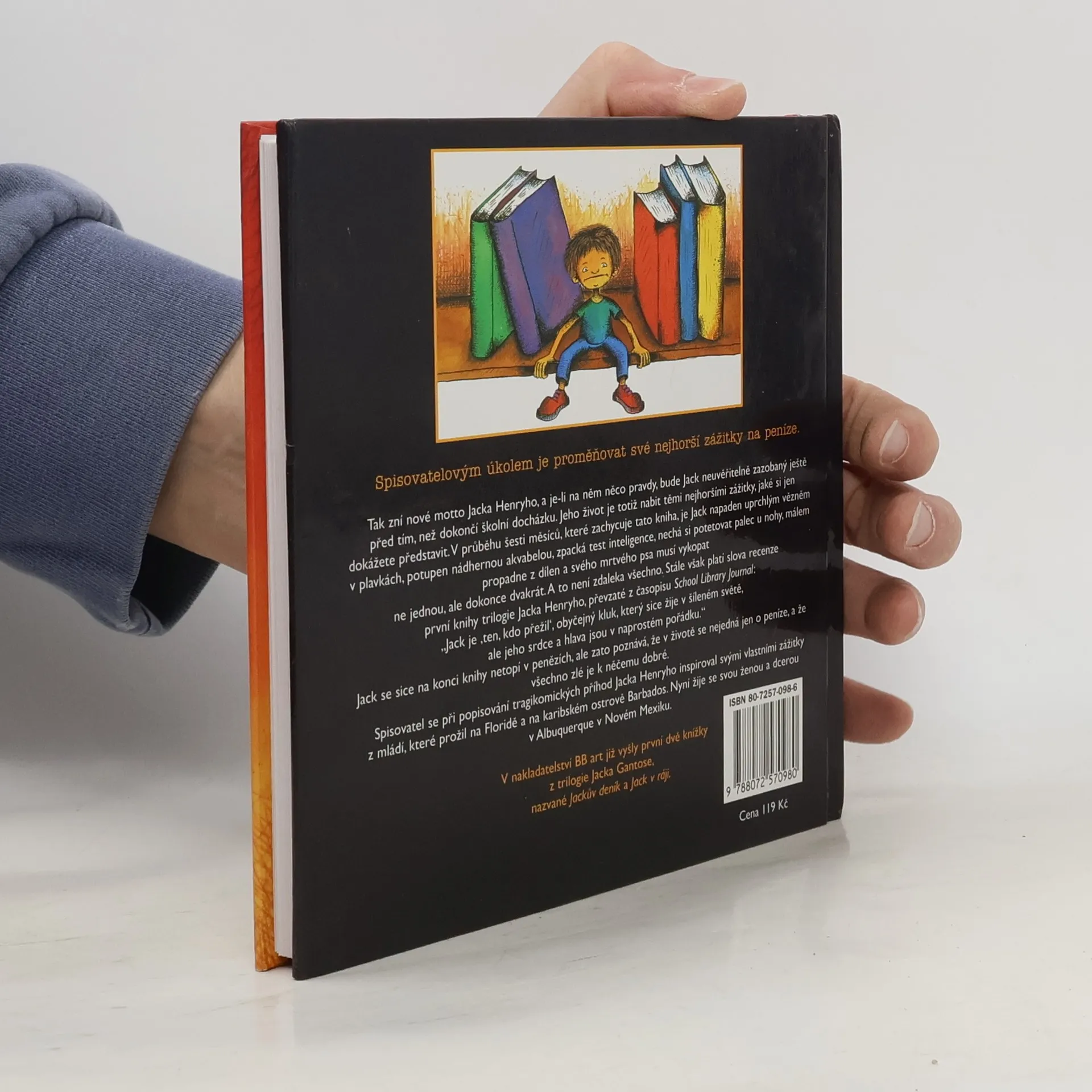Spisovatelovým úkolem je proměňovat své nejhorší zážitky na peníze. Tak zní nové motto Jacka Henryho, a je-li na něm něco pravdy, bude Jack neuvěřitelně zazobaný ještě před tím, než dokončí školní docházku. Jeho život je totiž nabit těmi nejhoršími zážitky, jaké si jen dokážete představit. V průběhu šesti měsíců, které zachycuje tato kniha, je Jack napaden uprchlým vězněm v plavkách, potupen nádhernou akvabelou, zpacká test inteligence, nechá si potetovat palec u nohy, málem propadne z dílen a svého mrtvého psa musí vykopat ne jednou, ale dokonce dvakrát. A to není zdaleka všechno. Stále však platí slova recenze první knihy Jacka Henryho převzaté z časopisu School Library Journal: "Jack je 'ten, kdo přežil', obyčejný kluk, který sice žije v šíleném světě, ale jeho srdce a hlava jsou v naprostém pořádku." Jack se sice na konci knihy netopí v penězích, ale zato poznává, že v životě se nejedná jen o peníze, a že všechno zlé je k něčemu dobré. Spisovatel se při popisování tragikomických příhod Jacka Henryho inspiroval svými vlastními zážitky z mládí, které prožil na Floridě a na karibském ostrově Barbados. Nyní žije se svou ženou a dcerou v Albuquerque v Novém Mexiku. (Oficiální anotace)