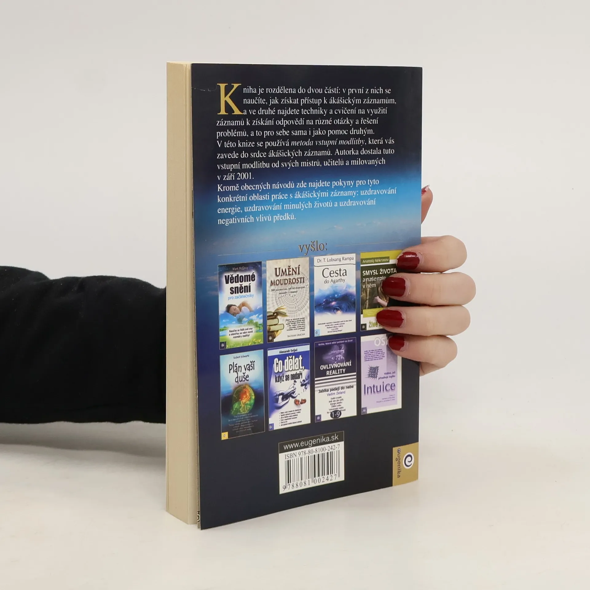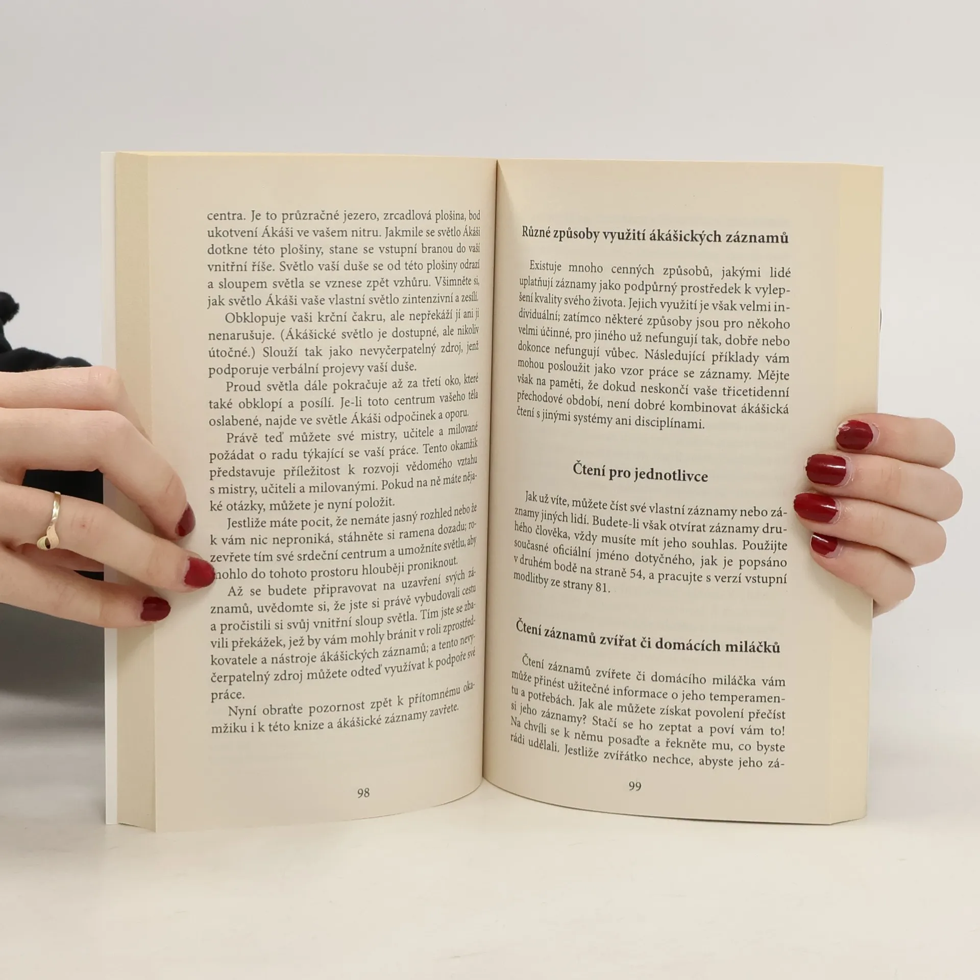 Kniha je rozdělena do dvou částí: v první z nich se naučíte, jak získat přístup k ákášickým záznamům, a ve druhé najdete techniky a cvičení na využití záznamů k získání odpovědí na různé otázky a řešení problémů, a to pro sebe sama i jako pomoc druhým.V této knize se používá metoda vstupní modlitby, která vás zavede do srdce ákášických záznamů. Autorka dostala tuto vstupní modlitbu od svých mistrů, učitelů a milovaných v září 2001. Kromě obecných návodů zde najdete pokyny pro tyto konkrétní oblasti práce s ákášickými záznamy: uzdravování energie, uzdravování minulých životů a uzdravování negativních vlivů předků.