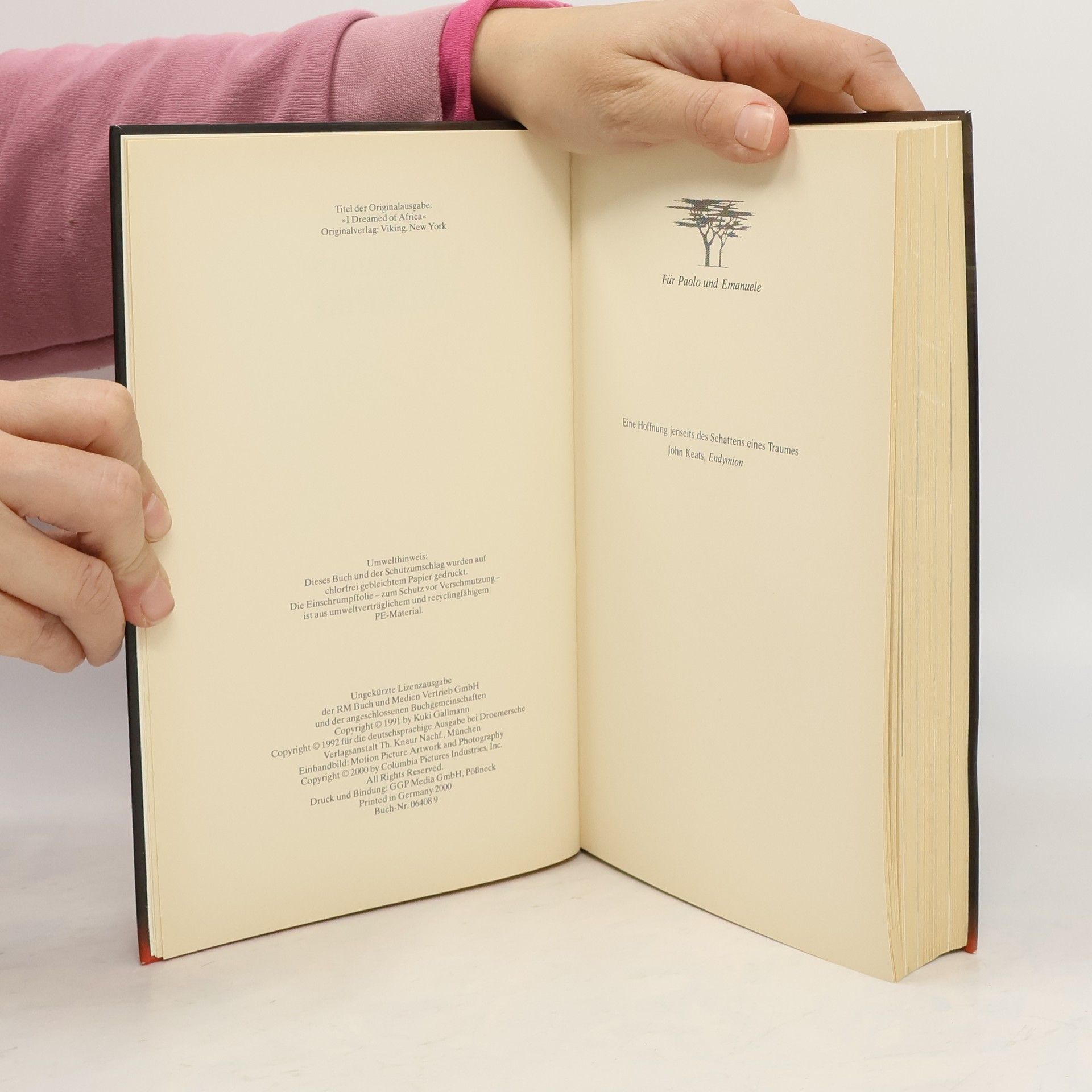 Die gebürtige Italienerin Kuki Gallmann lebt auf einer Farm in Kenia. Zwei Schicksalsschläge nehmen ihr zuerst den Mann, dann den Sohn. Aber die Liebe zur Wahlheimat Afrika und ihren Menschen geben ihr ungeahnte Kräfte. Sie wandelt die Farm in eine Stiftung um, in ein Tier- und Pflanzenreservat, richtet einen Handwerkshof für Frauen ein und initiiert Ausbildungsprogramme für deren Kinder. In diesem Buch erzählt sie ihre anrührende Geschichte.