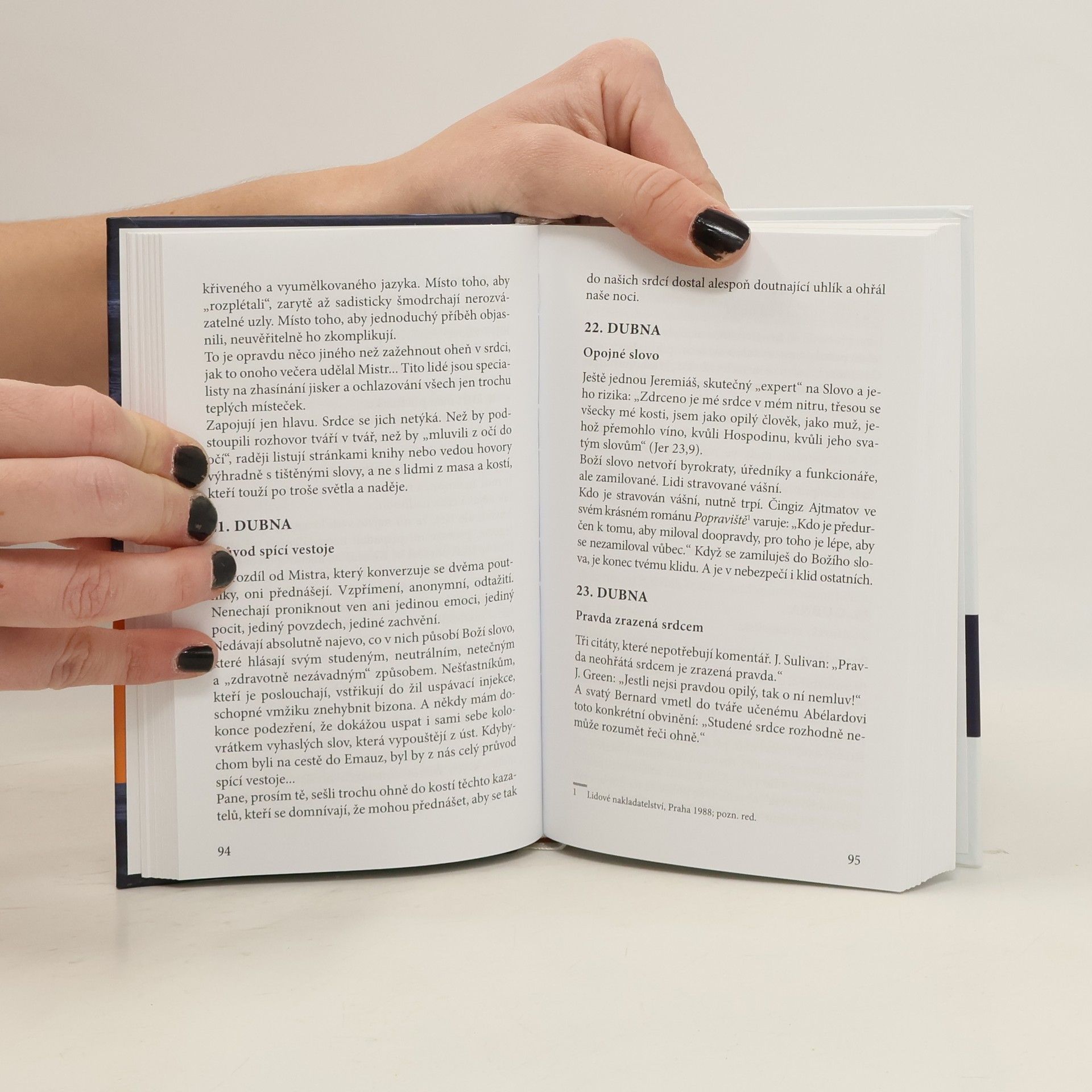 Kniha obsahuje zamyšlení na každý den v roce, a to z pera autora nebo jeho oblíbených myslitelů. Ve světle evangelia si bere na paškál některé modly a nešvary dnešní doby, přičemž každý měsíc je vždy věnován jednomu nosnému tématu. „Křesťan, který nechce zůstat uvězněn v tenatech dnešní mentality, propadnout se do bažiny banality, být pohlcen chřtánem všeobecného hloupnutí,… ale chce odolávat módám a pomrkávání po vládnoucích božstvech moci, zjevu, úspěchu a peněz, potřebuje znovu nalézt potěšení v přemýšlení a znovu navázat spojení se svým svědomím, příliš často dušeným a téměř utýraným okolním kraválem. Bratři, víte, že myšlení nejen neškodí, ale naopak prospívá zdraví naší víry?“ (z předmluvy)