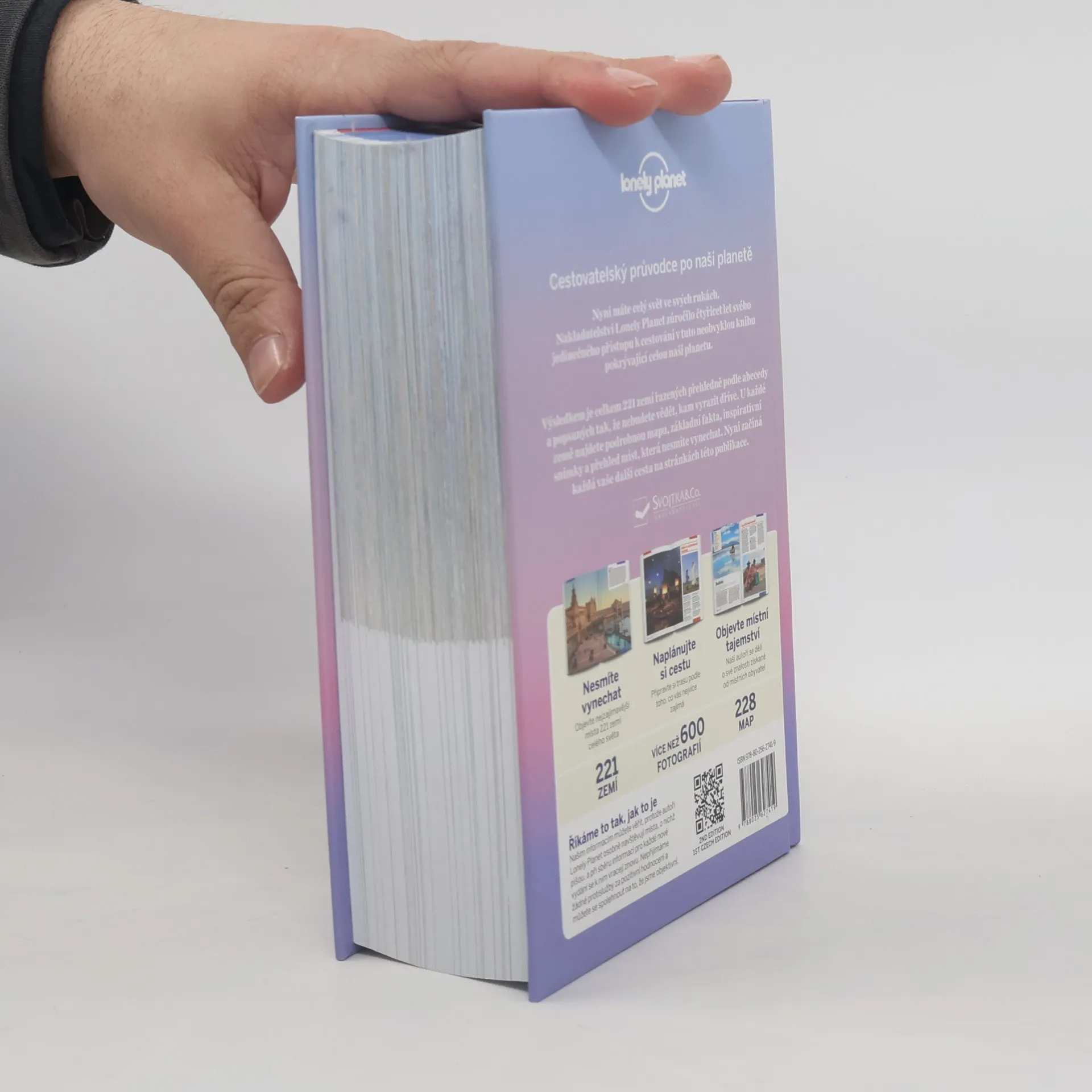 Nakladatelství Lonely Planet zúročilo čtyřicet let svého jedinečného přístupu k cestování v tuto neobvyklou knihu pokrývající celou naši planetu. Výsledkem je celkem 221 zemí řazených přehledně podle abecedy a popsaných tak, že nebude vědět, kam vyrazit dříve. U každé země najdete podrobnou mapu, základní fakta, inspirativní snímky a přehled míst, která nesmíte vynechat. Nyní začíná každá další cesta na stránkách této publikace. Teď máte celý svět ve svých rukách! Nesmíte vynechat Objevte nejzajímavější místa 221 zemí celého světa Naplánujte si cestu Připravte si trasu podle toho, co vás nejvíce zajímá Objevte místní tajemství Naši autoři se dělí o své znalosti získané od místních obyvatel