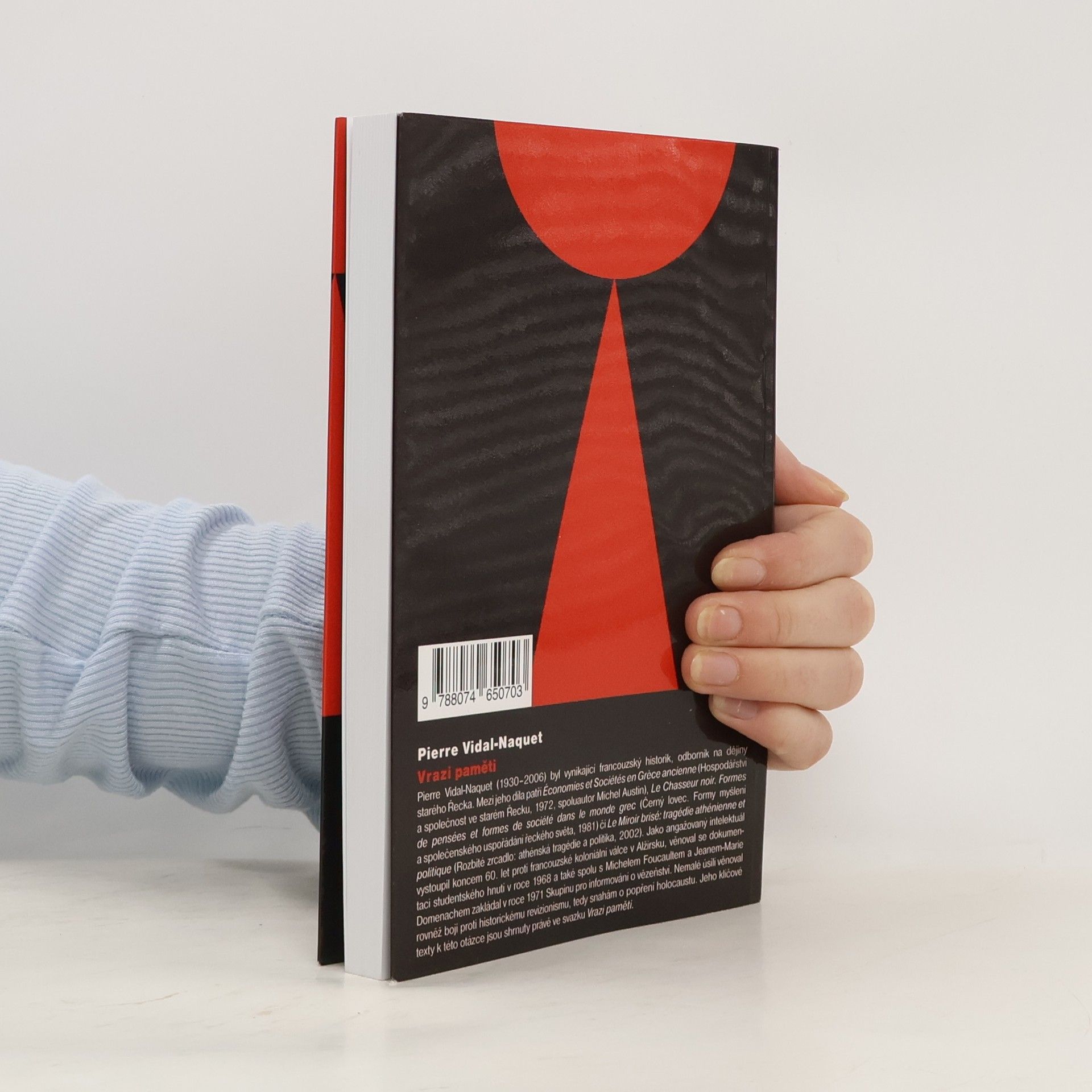 Pierre Vidal-Naquet (1930–2006) byl vynikající francouzský historik, odborník na dějiny starého Řecka. Mezi jeho díla patří Économies et Sociétés en Grčce ancienne (Hospodářství a společnost ve starém Řecku, 1972, spoluautor Michel Austin), Le Chasseur noir. Formes de pensées et formes de société dans le monde grec (Černý lovec. Formy myšlení a společenského uspořádání řeckého světa, 1981) či Le Miroir brisé: tragédie athénienne et politique (Rozbité zrcadlo: athénská tragédie a politika, 2002). Jako angažovaný intelektuál vystoupil koncem 60. let proti francouzské koloniální válce v Alžírsku, věnoval se dokumentaci studentského hnutí v roce 1968 a také spolu s Michelem Foucaultem a Jeanem-Marie Domenachem zakládal v roce 1971 Skupinu pro informování o vězeňství. Nemalé úsilí věnoval rovněž boji proti historickému revizionismu, tedy snahám o popření holocaustu. Jeho klíčové texty k této otázce jsou shrnuty právě ve svazku Vrazi paměti.