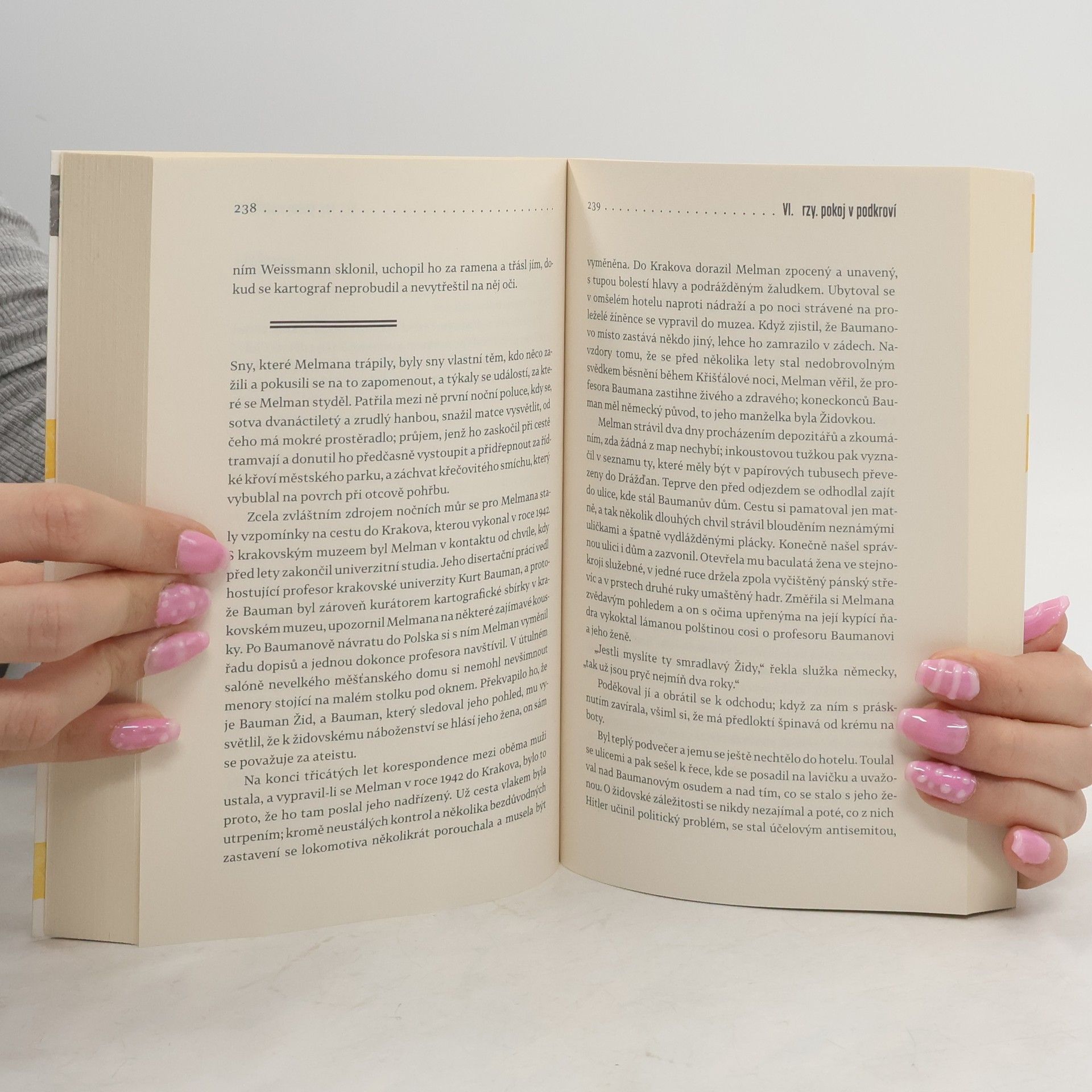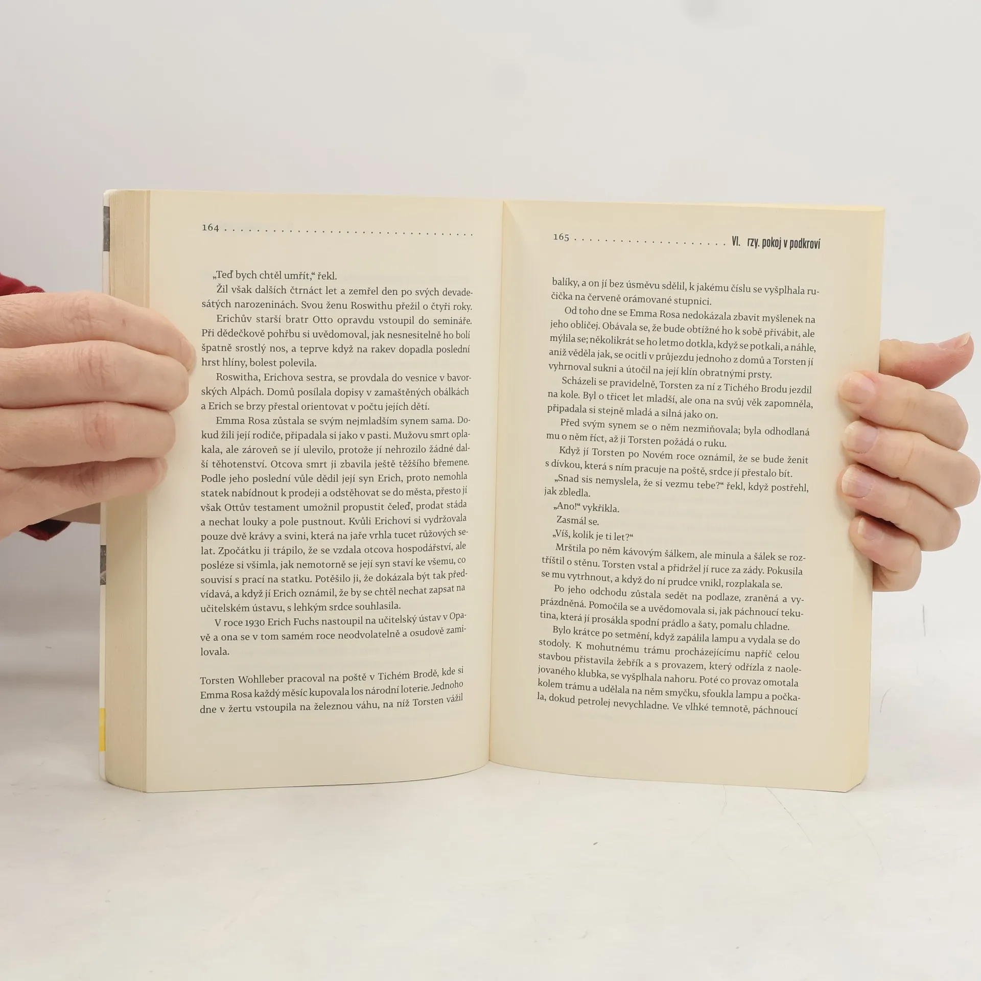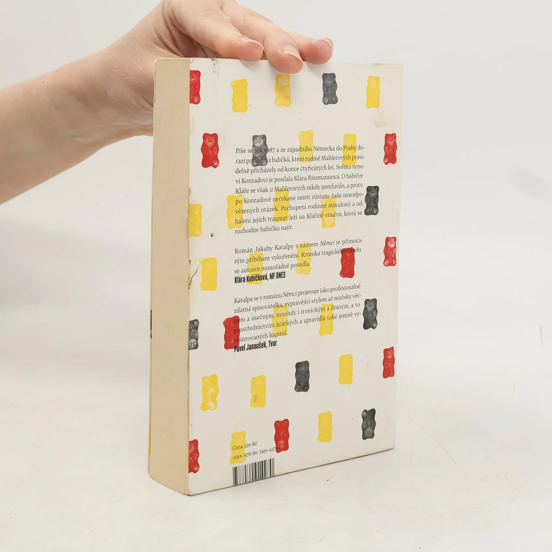 Hlavní hrdinka a současně vypravěčka románu žije v Londýně, kam odešla po listopadu 1989 za prací a kde nyní čeká své první dítě. Nadcházející mateřství ji v myšlenkách vrací do dětství v komunistickém Československu a vyvolává i zasutou vzpomínku na balíčky plné sladkostí, které dostávala od jakési babičky ze západního Německa… Třetí román mladé autorky Jakuby Katalpy čtenáře zavede až na počátek dvacátého století. Babička Klára Kolmannová stále žije a my sledujeme její osud od narození v roce 1910. Autorka mimořádně sugestivně a plasticky líčí život středostavovské německé rodiny na počátku století, útrapy první světové války a posléze vzestup fašismu ve třicátých letech. Přesto velké dějiny hrají jen okrajovou roli ve srovnání s rodinnými vztahy. Je tu Klářina psychicky labilní matka, prostopášný otec, i další příbuzenstvo a služebnictvo. Po začátku druhé světové války odchází Klára, čerstvá absolventka učitelského ústavu, do Berlína a poté se ocitá v českém pohraničí. Zde se sblíží s místním rasem, který ji přitahuje živočišnou tělesností a drsnou povahou…