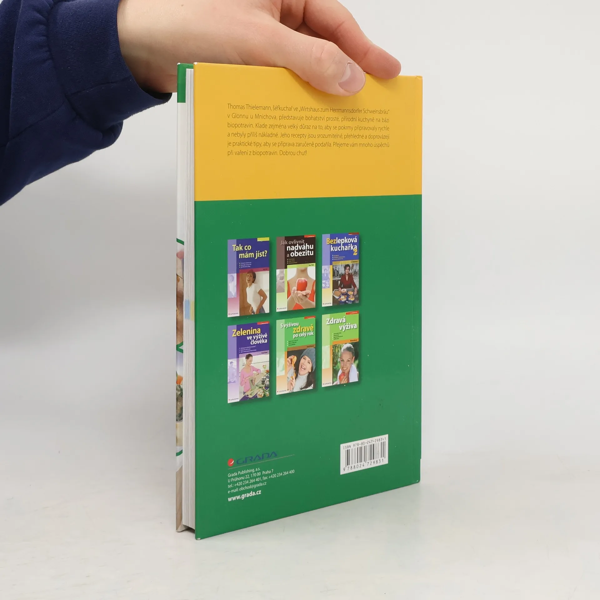Thomas Thielemann, šéfkuchař ve "Wirtshaus zum Herrmannsdorfer Schweinsbräu" v Glonnu u Mnichova, představuje bohatství prosté, přírodní kuchyně na bázi biopotravin. Klade zejména velký důraz na to, aby se pokrmy připravovaly rychle a nebyly příliš nákladné. Jeho recepty jsou srozumitelné, přehledné a doprovázejí je praktické tipy, aby se příprava zaručeně podařila. Přejeme vám mnoho úspěchů při vaření z biopotravin. Dobrou chuť!