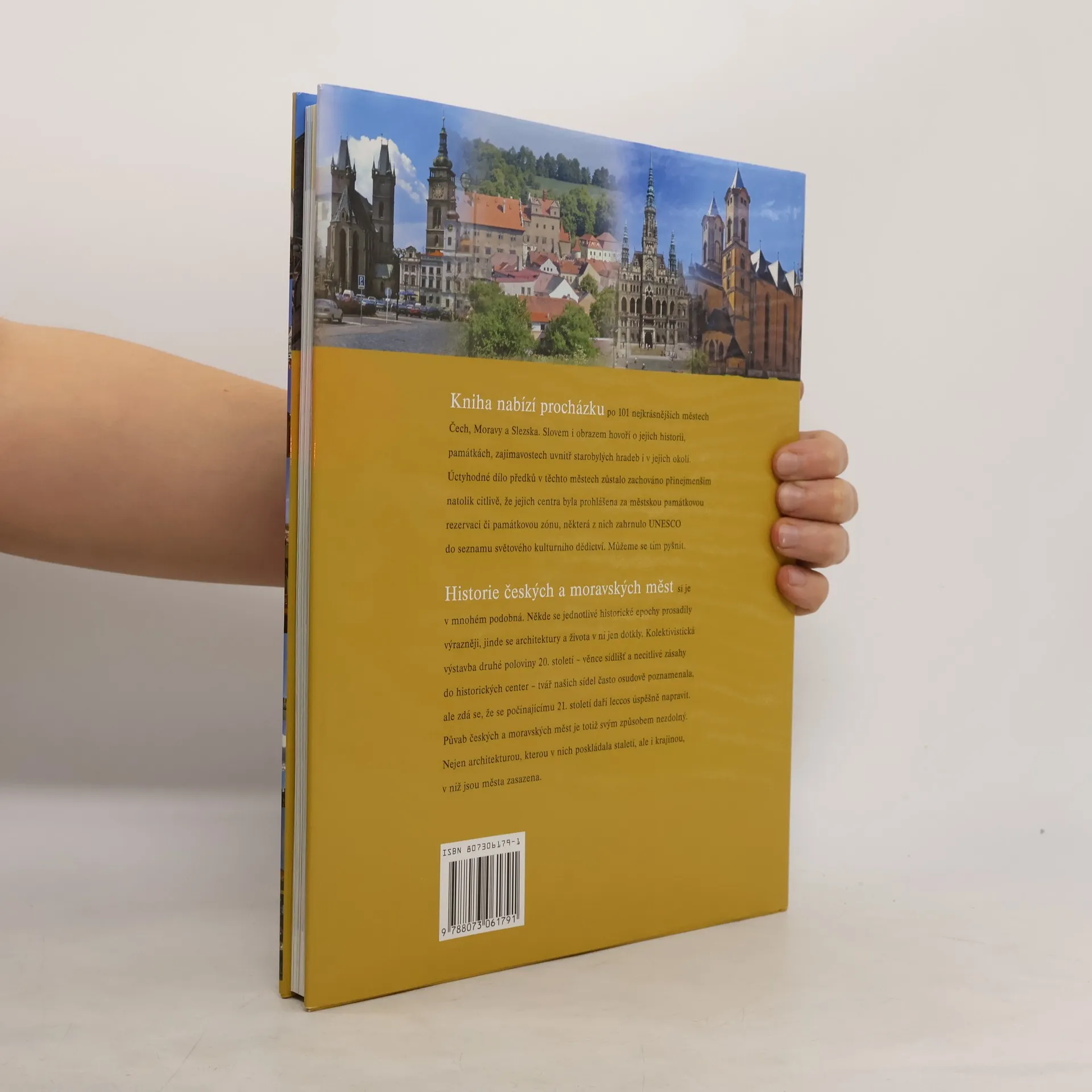 Vydejte se s námi na procházku po nejkrásnějších městech Čech, Moravy a Slezska. Slovem i obrazem vás seznámíme s jejich historií, památkami, zajímavostmi uvnitř starobylých hradeb i v jejich okolí. Úctyhodné dílo předků v těchto městech zůstalo zachováno přinejmenším natolik citlivě, že jejich centra byla prohlášena za městskou památkovou rezervaci či památkovou zónu, některá z nich zahrnulo UNESCO do seznamu světového kulturního dědictví. Města jsou v knize seřazena za sebou tak, aby jejich návštěvník mohl přejíždět z jednoho krásného města do druhého nejbližšího. Čtivý text o dějinách a místních zajímavostech provázejí nádherné barevné fotografie, orientační mapky k příjezdu, parkování, doporučená doba návštěvy, tipy na výlety do okolí - a mnoho dalšího o našich městech, jak je dosud neznáte. Pro lepší orientaci slouží mapy na předsádkách i barevné hmatníky v rozích stránek.