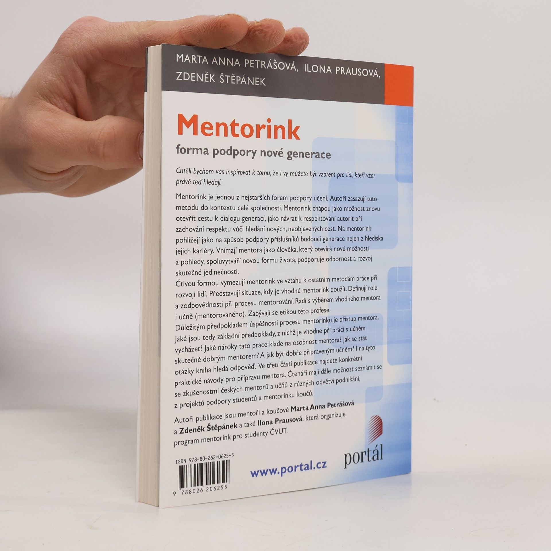 Mentorink je metoda, která funguje na principu rozvíjení méně zkušených jedinců, např. nových kolegů, osobami zkušenými (mentory). Autoři pojímají mentorink jako cestu k dialogu generací, jako návrat k respektování autorit, znalostí a zkušeností při zachování respektu vůči hledání nových, neobjevených cest. Na mentorink pohlížejí jako na způsob podpory příslušníků budoucí generace nejen z hlediska jejich kariéry. Vnímají mentora jako člověka, který otevírá nové možnosti a pohledy, spoluvytváří novou formu života, podporuje odbornost a rozvoj skutečné jedinečnosti. Autoři se snaží odpovědět, kdy je vhodné mentorink použít. Definují role a zodpovědnosti při procesu mentorování. Radí s výběrem vhodného mentora i juniora (menteeho). Zabývají se etikou této profese. Popisují různé typy mentorinku i jednotlivé fáze mentorovacího procesu. Uvažují také o tom, jaké nároky tato práce klade na osobnost mentora, jak se stát skutečně dobrým mentorem a jak být dobře připraveným juniorem. Čtenáři mají dále možnost seznámit se se zkušenostmi českých mentorů z různých odvětví podnikání i z různých věkových skupin.