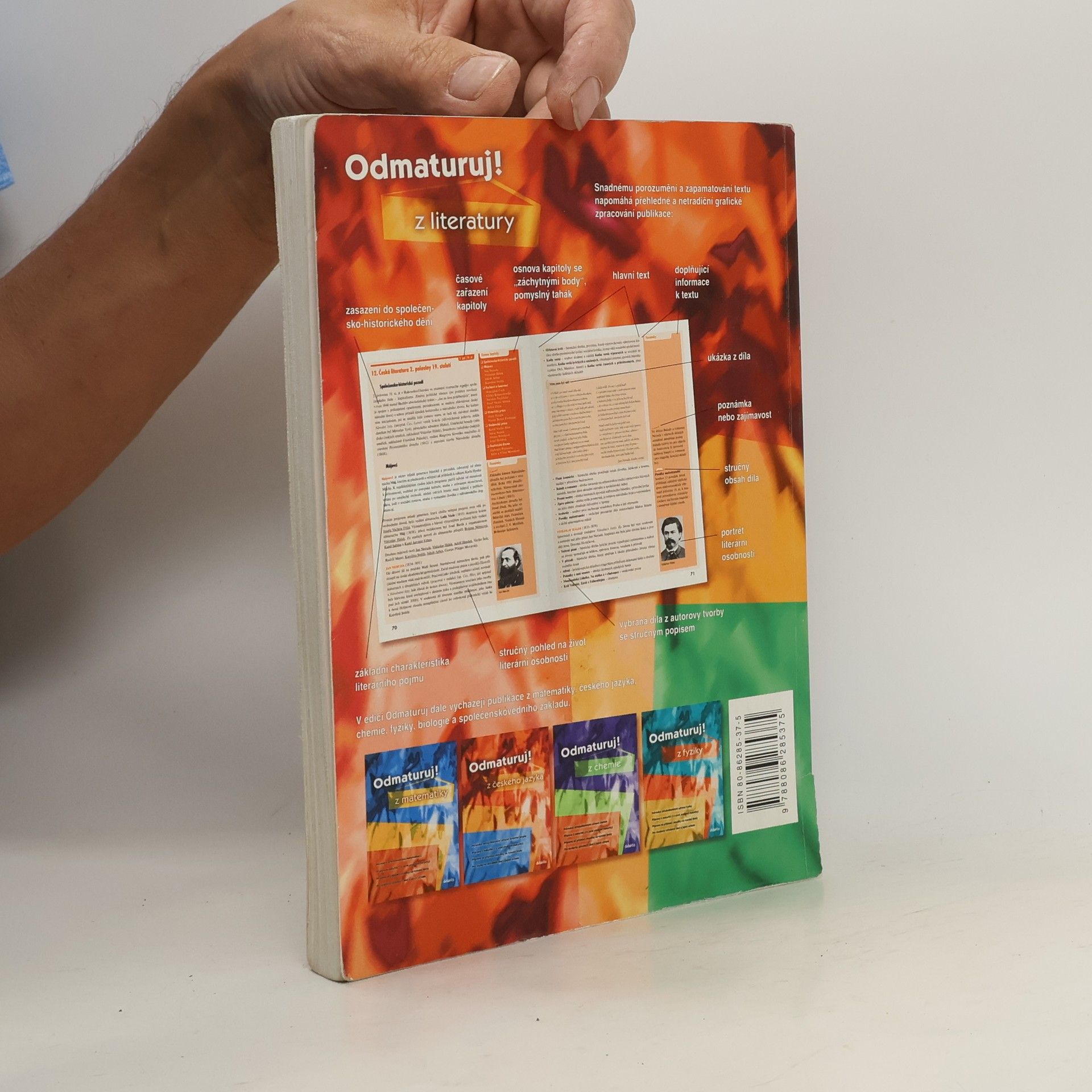 Poutavá učebnice určená k přípravě na maturitu (i k nové podobě maturity) a k přijímacím zkouškám na vysoké školy. Rozšiřuje poznatky z Odmaturuj z literatury 1, obsahuje 167 vybraných děl české a světové literatury od počátků do současnosti, zahrnuje prózu i poezii. Kniha je doplněna ukázkami z děl, podnětnými otázkami, vysvětlením literárněvědných pojmů, obrázky, poznámkami a zajímavostmi. * Každému dílu je věnována jedna strana a text je přehledně členěn na 3 části.