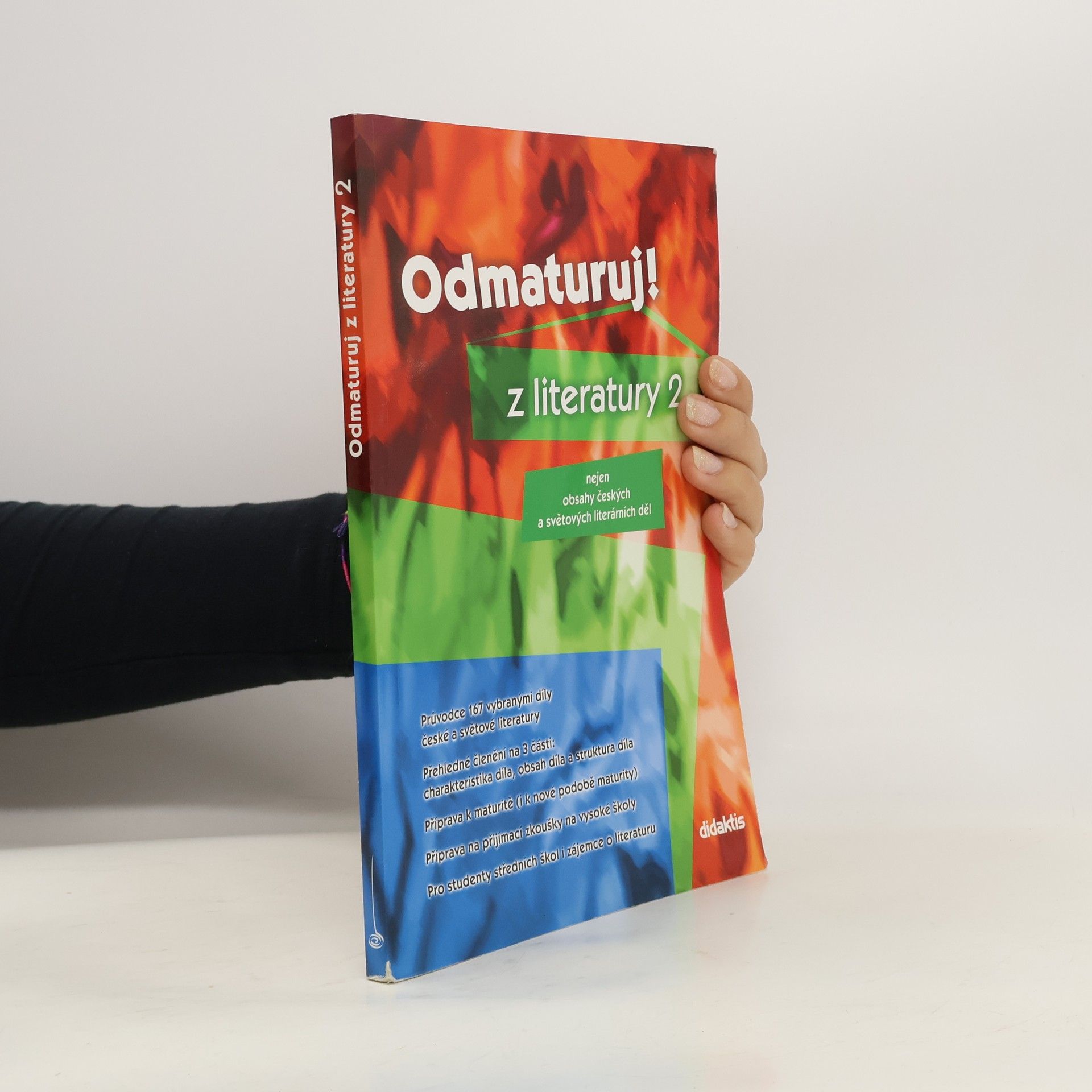 Poutavá učebnice určená k přípravě na maturitu (i k nové podobě maturity) a k přijímacím zkouškám na vysoké školy. Rozšiřuje poznatky z Odmaturuj z literatury 1, obsahuje 167 vybraných děl české a světové literatury od počátků do současnosti, zahrnuje prózu i poezii. Kniha je doplněna ukázkami z děl, podnětnými otázkami, vysvětlením literárněvědných pojmů, obrázky, poznámkami a zajímavostmi. * Každému dílu je věnována jedna strana a text je přehledně členěn na 3 části.