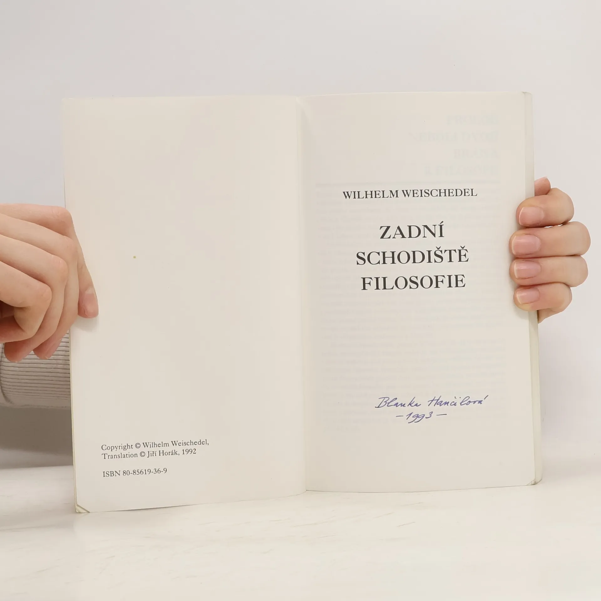 Zadní schodiště filosofie, Wilhelm Weischedel, Jiří Horák