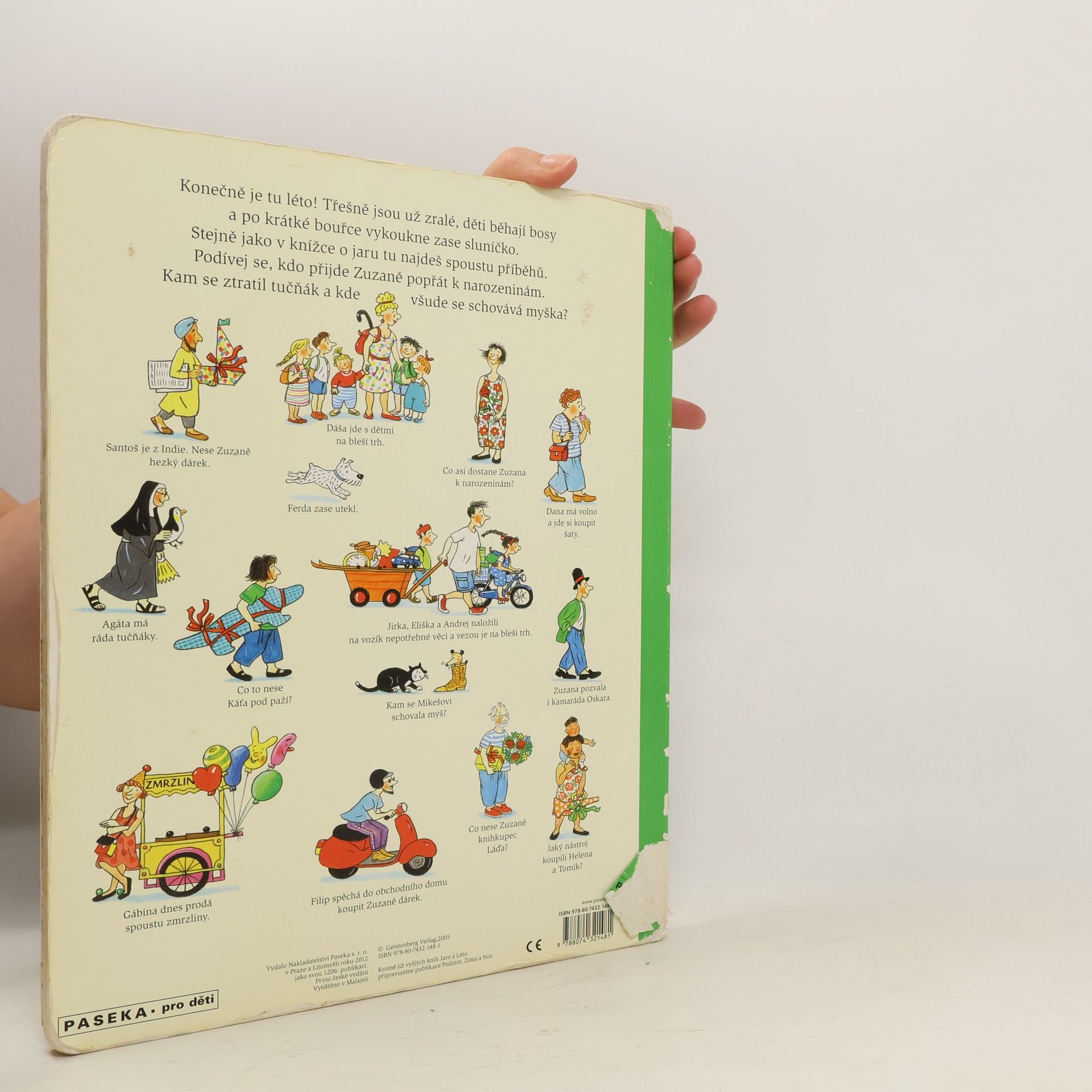 Po knížce o jaru přichází Léto. Autorka na obrázcích znovu vypráví své malé, vtipné příběhy všedního dne, které poutají a bystří pozornost, podněcují fantazii a řečové schopnosti, ale hlavně baví malé i větší děti. V atmosféře slunného léta se opět setkáte s některými starými známými a kamarády z předchozí knížky Jaro. Přibudou další postavy, věci a zvířátka.