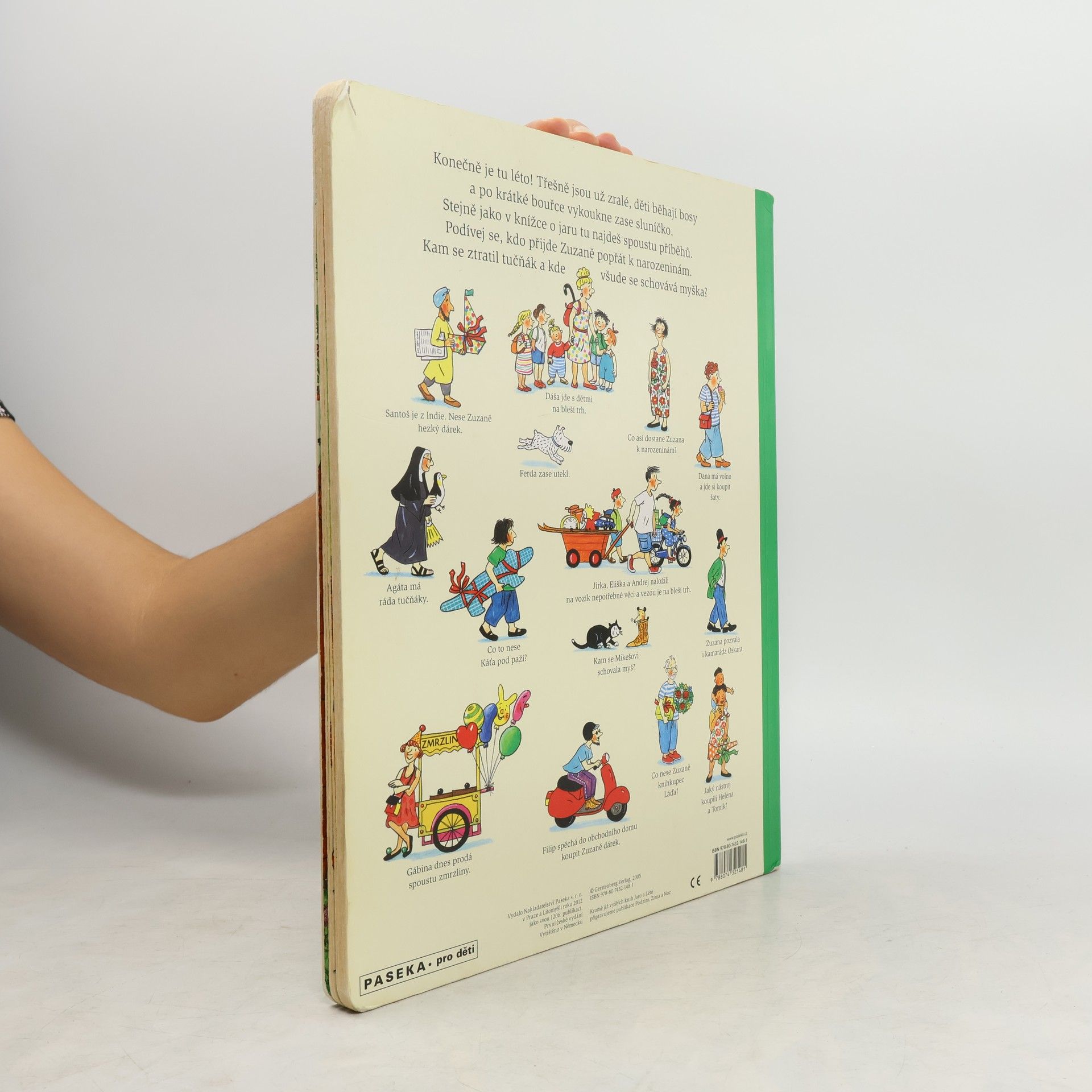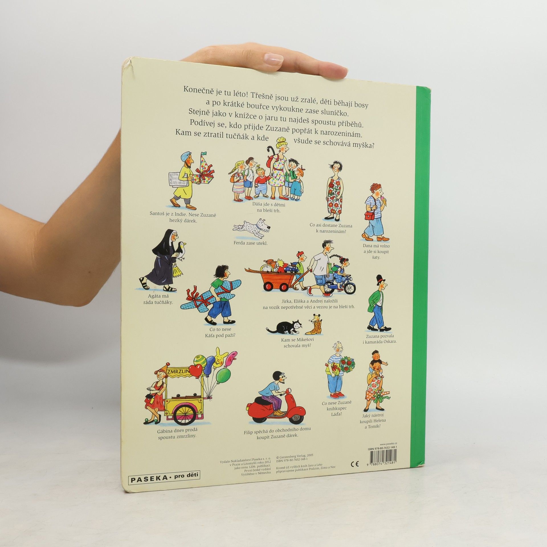 Po knížce o jaru přichází Léto. Autorka na obrázcích znovu vypráví své malé, vtipné příběhy všedního dne, které poutají a bystří pozornost, podněcují fantazii a řečové schopnosti, ale hlavně baví malé i větší děti. V atmosféře slunného léta se opět setkáte s některými starými známými a kamarády z předchozí knížky Jaro. Přibudou další postavy, věci a zvířátka.