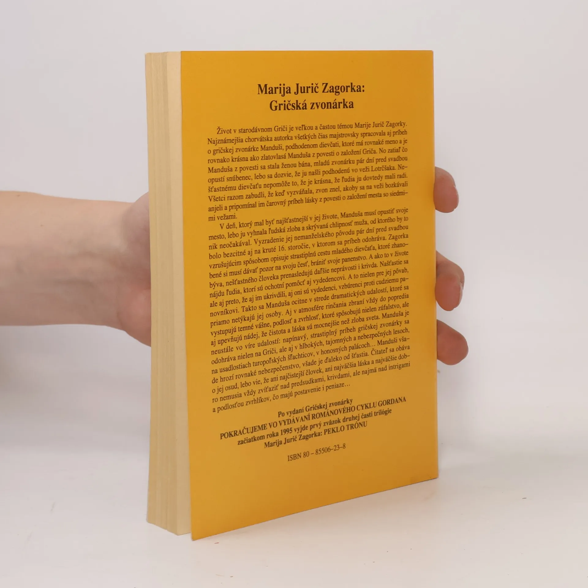 Chorvátska autorka majstrovky spracovala príbeh o gričskej zvonárke Manduši, podhodenom dievčati, ktoré má rovnaké meno a je rovnako krásna ako zlatovlasá Manduša z povesti o založení Griča. No zatiaľ čo Manduša z povesti sa stala ženou bána, mladú zvonárku pár dní pred svadbou opustí snúbenec, lebo sa dozvie, že ju našli podhodenú vo veži Lotrčšaka.