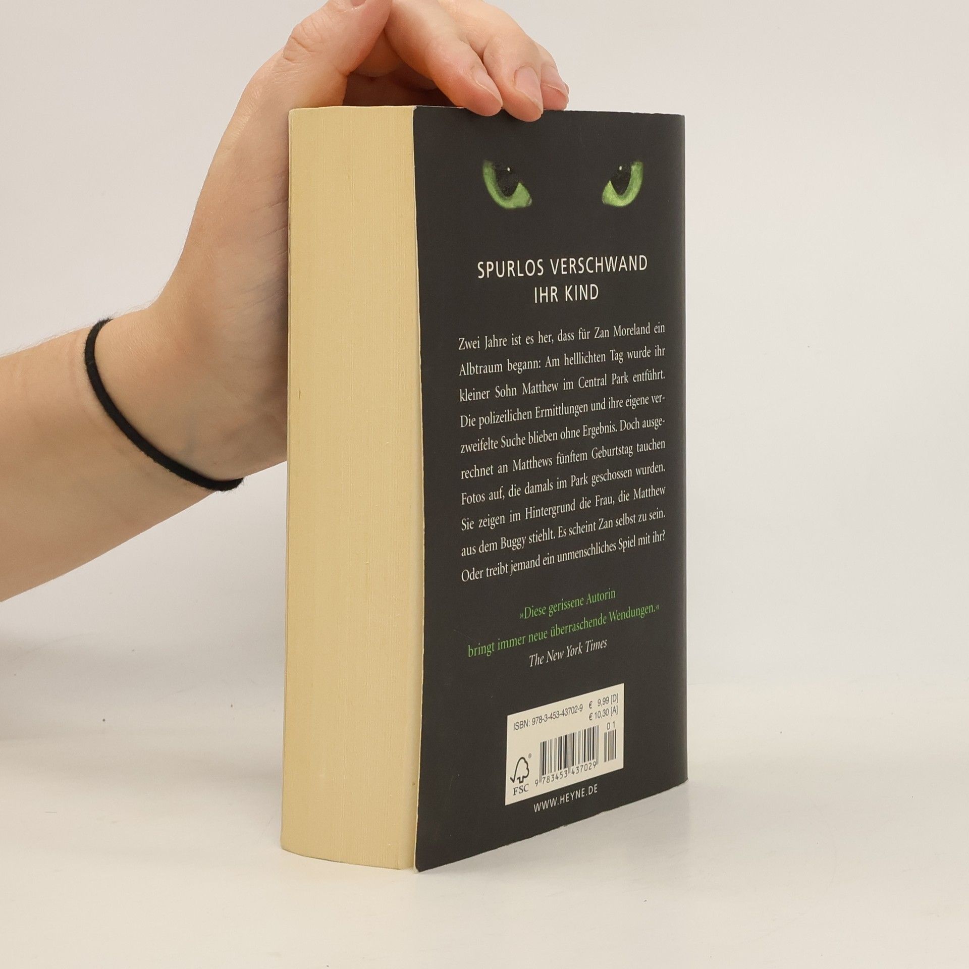 Spurlos verschwand ihr Kind Zwei Jahre ist es her, dass für Zan Moreland ein Albtraum begann: Am helllichten Tag wurde ihr kleiner Sohn Matthew im Central Park entführt. Die polizeilichen Ermittlungen und ihre eigene verzweifelte Suche blieben ohne Ergebnis. Doch ausgerechnet an Matthews fünftem Geburtstag tauchen Fotos auf, die damals im Park geschossen wurden. Sie zeigen im Hintergrund die Frau, die Matthew aus dem Kinderwagen stiehlt. Es scheint Zan selbst zu sein. Oder treibt jemand ein unmenschliches Spiel mit ihr?