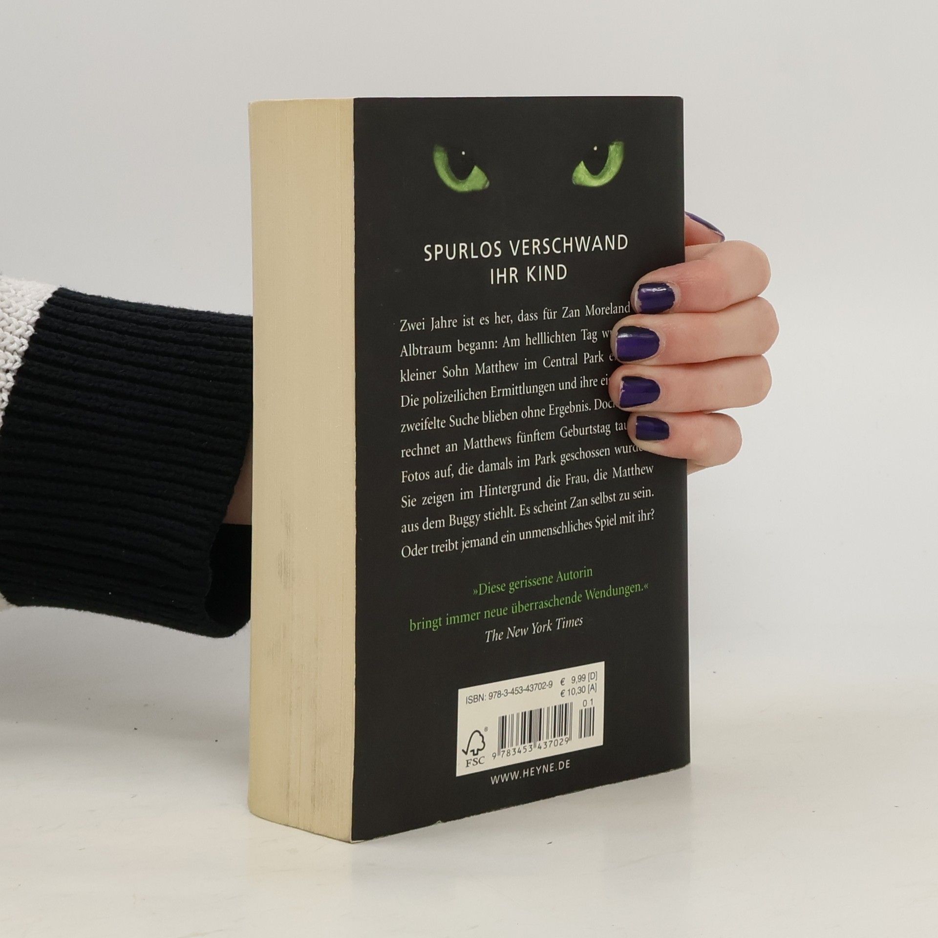Spurlos verschwand ihr Kind Zwei Jahre ist es her, dass für Zan Moreland ein Albtraum begann: Am helllichten Tag wurde ihr kleiner Sohn Matthew im Central Park entführt. Die polizeilichen Ermittlungen und ihre eigene verzweifelte Suche blieben ohne Ergebnis. Doch ausgerechnet an Matthews fünftem Geburtstag tauchen Fotos auf, die damals im Park geschossen wurden. Sie zeigen im Hintergrund die Frau, die Matthew aus dem Kinderwagen stiehlt. Es scheint Zan selbst zu sein. Oder treibt jemand ein unmenschliches Spiel mit ihr?