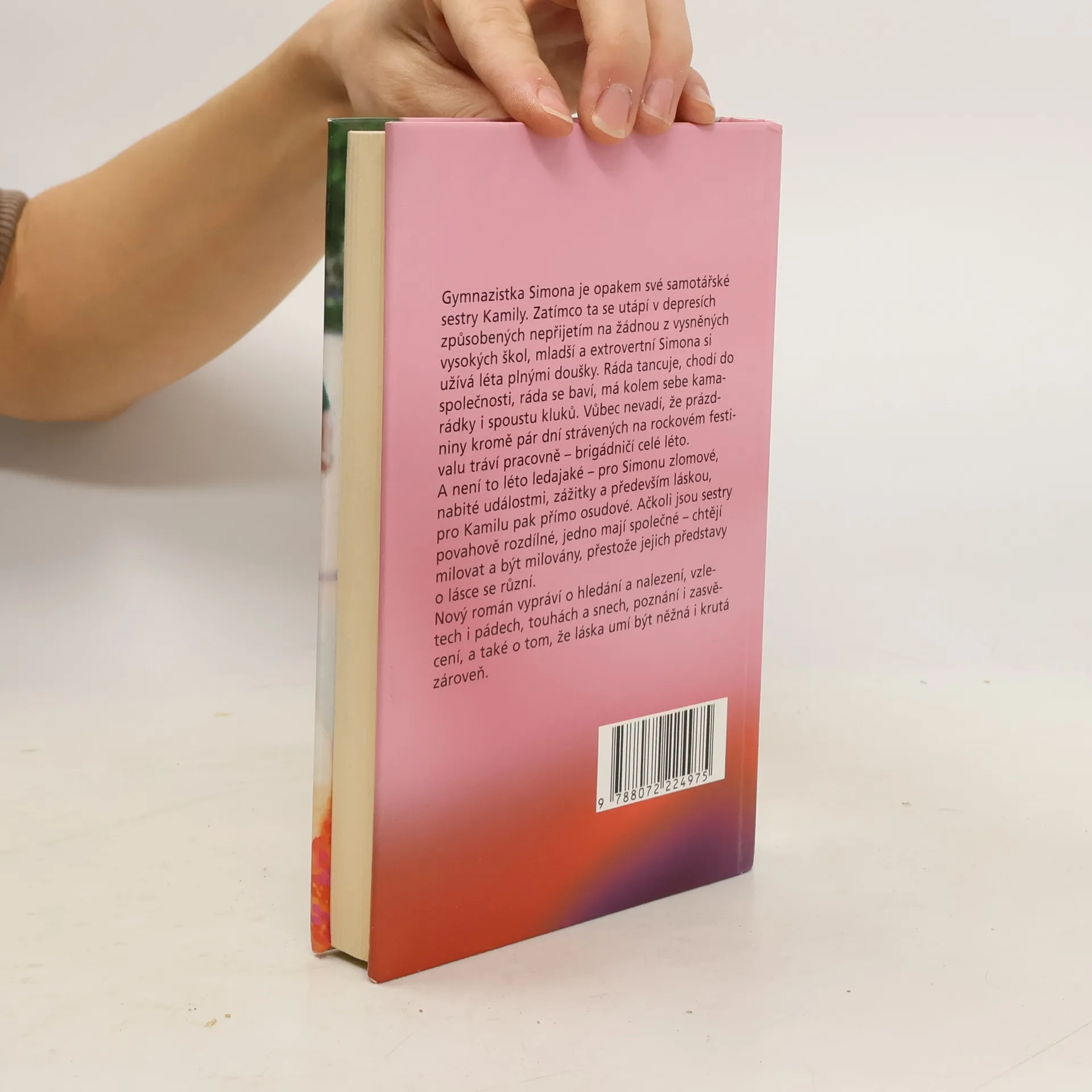 Gymnazistka Simona je opakem své samotářské sestry Kamily. Zatímco ta se utápí v depresích způsobených nepřijetím na žádnou z vysněných vysokých škol, mladší a extrovertní Simona si užívá léta plnými doušky. Ráda tancuje, chodí do společnosti, ráda se baví, má kolem sebe kamarádky i spoustu kluků. Vůbec nevadí, že prázdniny kromě pár dní strávených na rockovém festivalu tráví pracovně – brigádničí celé léto. A není to léto ledajaké – pro Simonu zlomové, nabité událostmi, zážitky a především láskou, pro Kamilu pak přímo osudové. Ačkoli jsou sestry povahově rozdílné, jedno mají společné – chtějí milovat a být milovány, přestože jejich představy o lásce se různí. Nový román vypráví o hledání a nalezení, vzletech i pádech, touhách a snech, poznání i zasvěcení, a také o tom, že láska umí být něžná i krutá zároveň.