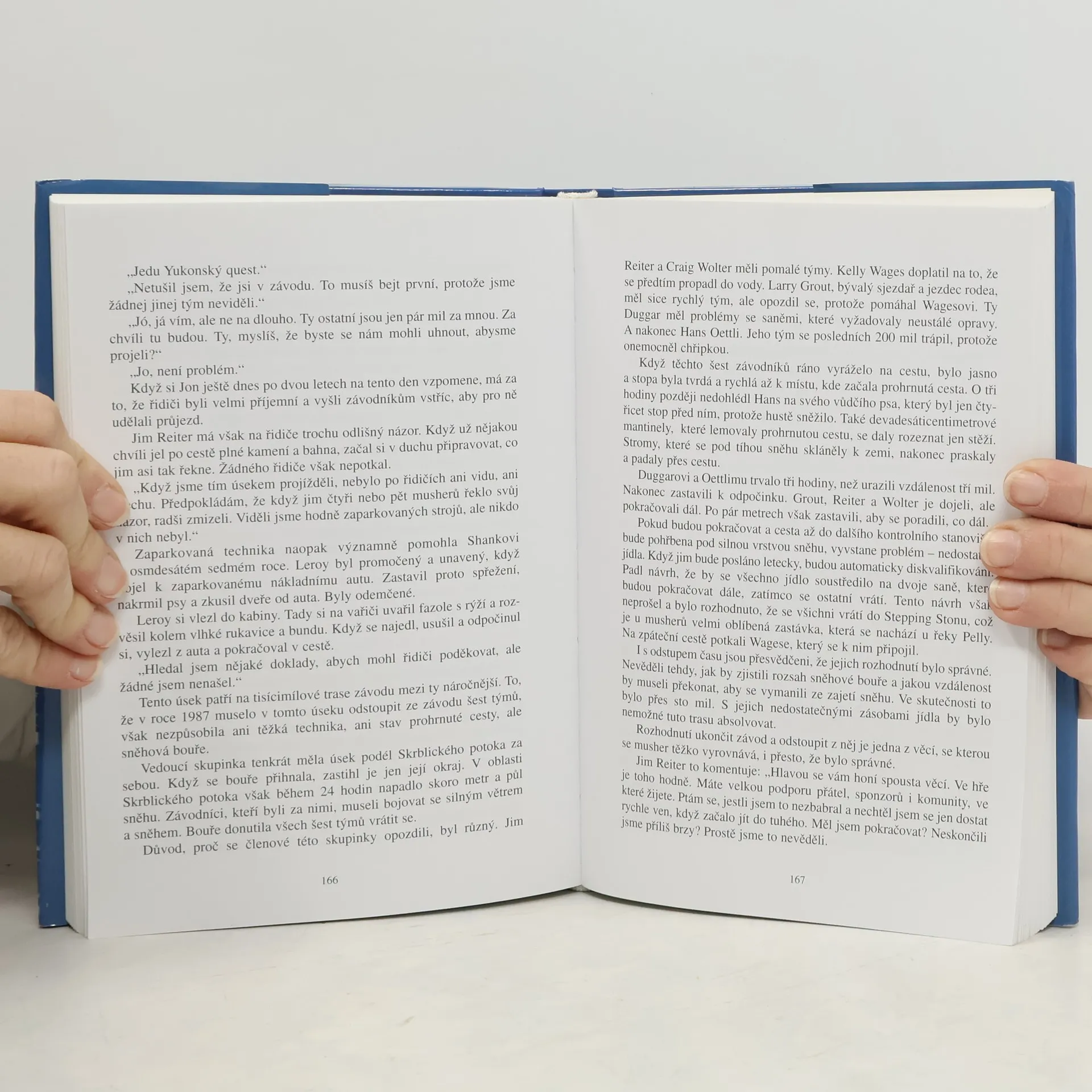 Podtitul: závod psích spřežení na 1000 mil přes Aljašku a Yukon Pustou krajinou z Kanady na Aljašku se ženou psi se saněmi a s nimi závodníci, kteří věří tomu, že letos konečně vyhrají. Kniha zachycuje historii a průběh nejtěžšího závodu psích spřežení na světě. Yukon Quest, závod na tisíc mil mezi americkým Fairbanksem a kanadským Whitehorsem, se stal legendou pro všechny příznivce saňových psů. Odehrává se v končinách, které vypadají skoro stejně jako před tisíci lety. Vysoké hory, velké řeky a hlavně sníh a led ve všech svých podobách. Tady každý rok ožívá něco, o čem většina z nás ví jenom z vyprávění – saně se ženou bílou plání, sníh odletuje od psích tlap, musher se drží madel saní a v běhu pobízí spřežení. Vynikající znalec Yukon Questu, kanadský novinář John Firth, nám ale umožní nahlédnout za plentu romantiky a prostřednictvím této knihy se seznámíme s každodenní tvrdou prací při výcviku a krmení psů, s průběhem a tratí závodu, s pocity vítěze i závodníka, kterému onemocněl tým a on on musí po roce nadějí a tužeb závod vzdát. Seznámíme se s pořadateli, veterináři a mnoha dalšími lidmi, kteří zajišťují chod závodu...