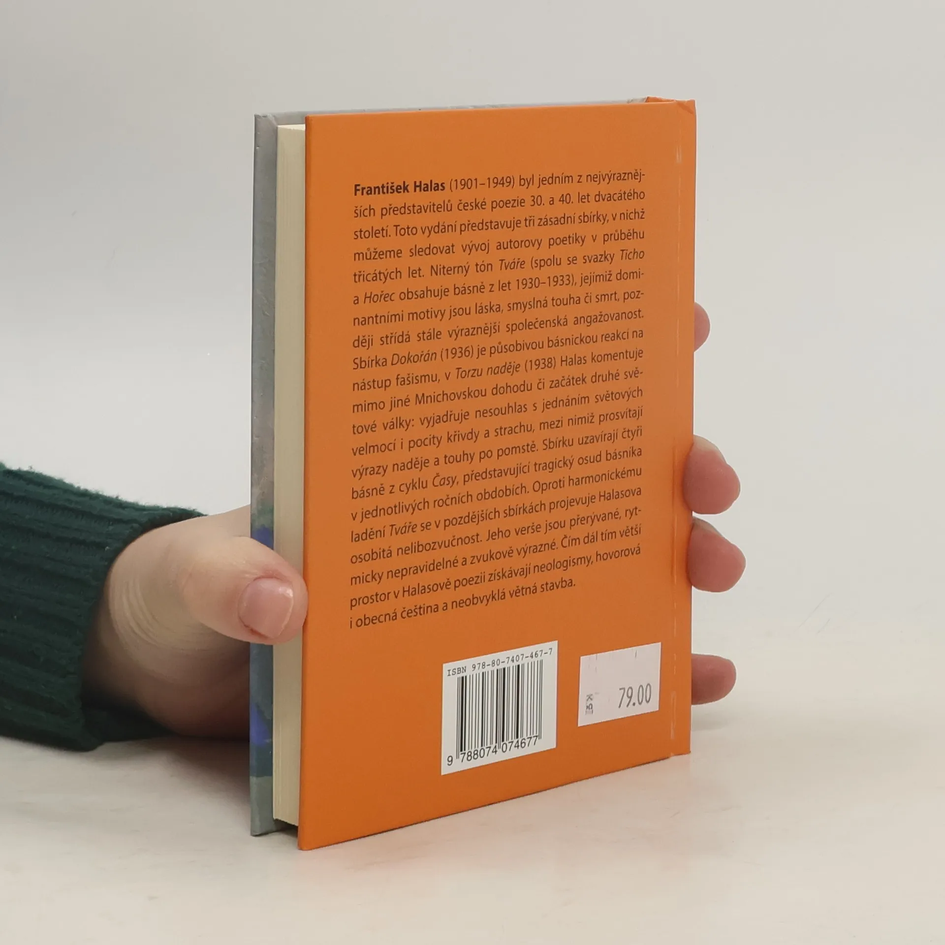 František Halas byl jedním z nejvýraznějších představitelů české poezie 30. a 40. let dvacátého století. Toto vydání představuje tři základní sbírky, v nichž můžeme sledovat vývoj autorovy poetiky v průběhu třicátých let. Niterný tón Tváře (spolu se svazky Ticho a Hořec obsahuje básně z let 1930-1933), jejímiž dominantními motivy jsou láska, smyslná touha či smrt, později střídá stále výraznější společenská angažovanost. Sbírka Dokořán (1936) je působivou básnickou reakcí na nástup fašismu. V Torzu naděje (1938) Halas komentuje mimo jiné Mnichovskou dohodu či začátek druhé světové války: vyjadřuje nesouhlas s jednáním světových velmocí i pocity křivdy a strachu, mezi nimiž prosvítají výrazy naděje a touhy po pomstě. Sbírku uzavírají čtyři básně z cyklu Časy, představující tragický osud básníka v jednotlivých ročních obdobích. Oproti harmonickému ladění Tváře se v pozdějších sbírkách projevuje Halasova osobitá nelibozvučnost. Jeho verše jsou přerývané, rytmicky nepravidelné a zvukově výrazné. Čím dál tím větší prostor v Halasově poezii získávají neologismy, hovorová i obecná čeština a neobvyklá větná stavba.