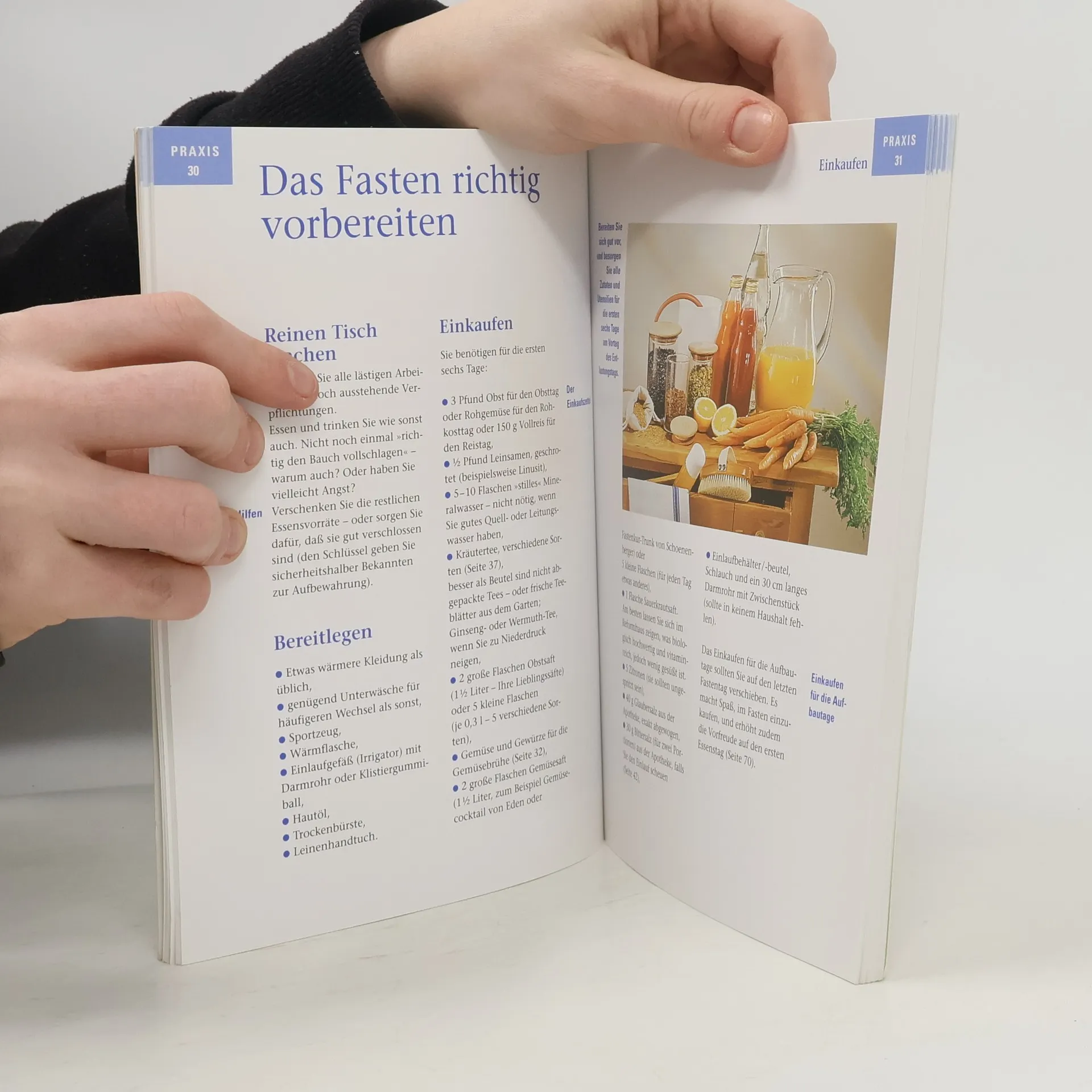 Der Ratgeber beschreibt eine Fastenwoche mit meditativen Elementen sowie die Nachfastenzeit.