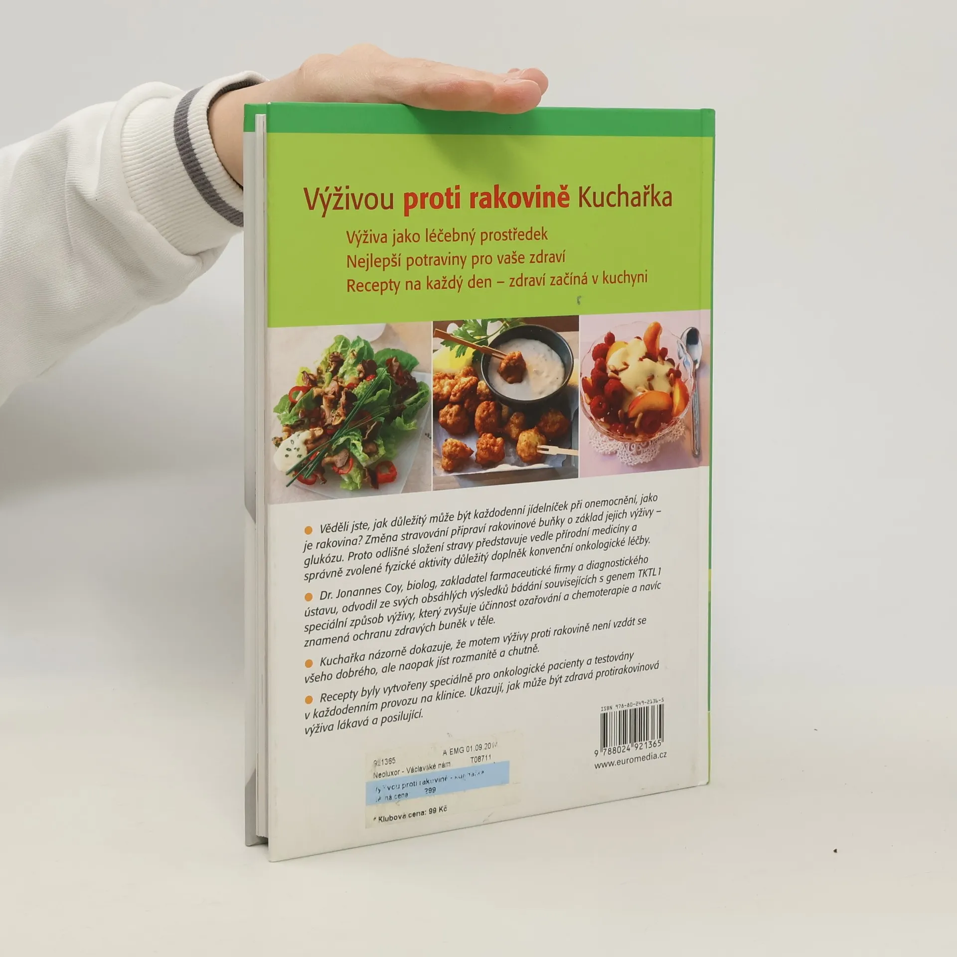 Recepty na každý den – zdraví začíná v kuchyni. Změna stravování připraví rakovinové buňky o základ jejich výživy – glukózu a chrání zdravé buňky v těle. Proto odlišné složení stravy představuje důležitý doplněk onkologické léčby. Kuchařka názorně dokazuje, že motem výživy proti rakovině není vzdát se všeho dobrého, ale naopak jíst rozmanitě a chutně. Recepty byly vytvořeny speciálně pro onkologické pacienty a testovány na klinice. Ukazují, jak může být zdravá protirakovinová výživa lákavá a posilující.