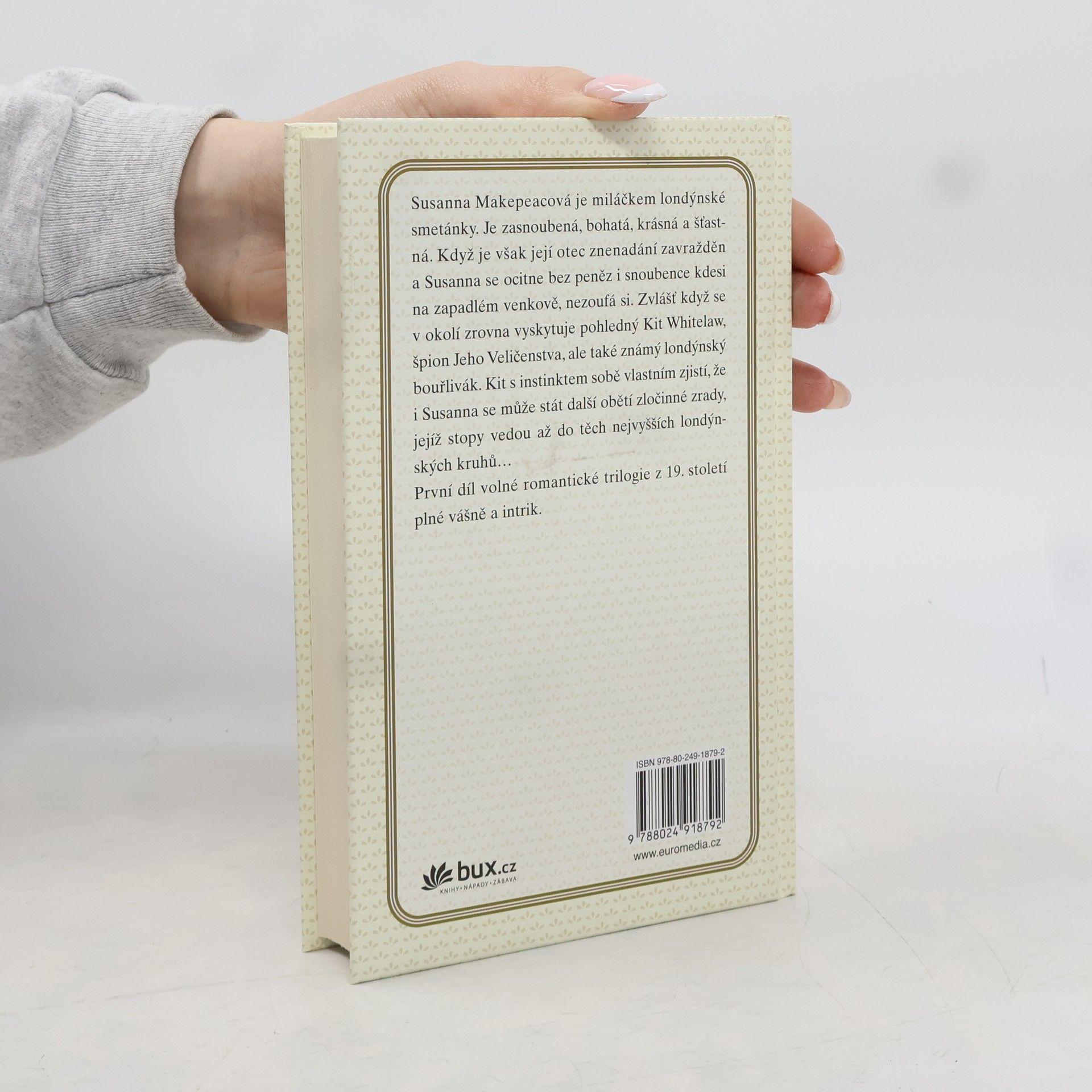 První díl volné romantické trilogie. Susanna Makepeacová je miláček londýnské smetánky, bohatá a zasnoubená mladá dáma. Když je však její otec zavražděn a Susanna se ocitne bez peněz, bez snoubence a kdesi na zastrčeném venkově, nezoufá si. Zvlášť když se v okolí vyskytuje pohledný Kit Whitelaw, bývalý špion jeho Veličenstva a londýnský bouřlivák. Kit s neselhávajícím instinktem zjistí, že i Susanna se může stát další obětí temného spiknutí.