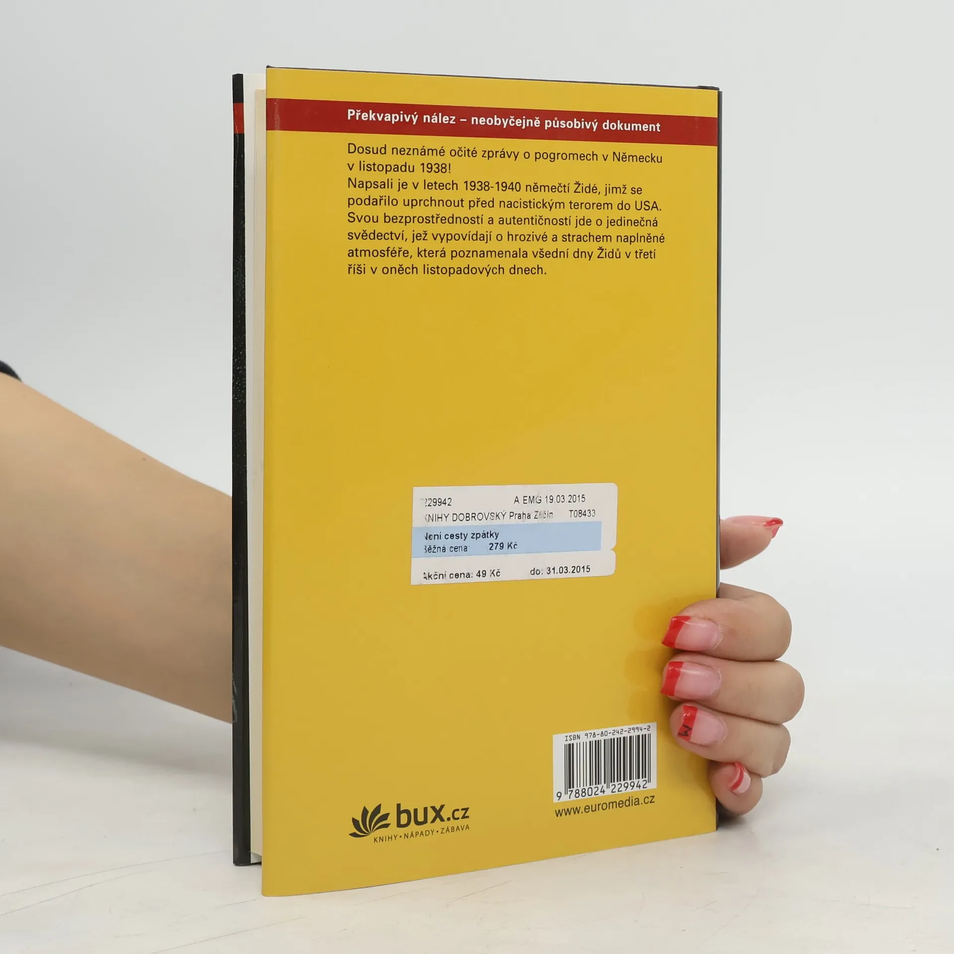 Dosud neznámé očité zprávy o pogromech v Německu v listopadu 1938. Napsali je v letech 1938-1940 němečtí Židé, jimž se podařilo uprchnout před nacistickým terorem do USA. Svou bezprostředností a autentičností jde o jedinečná svědectví, jež vypovídají o hrozivé a strachem naplněné atmosféře, která poznamenala všední dny Židů v třetí říši v oněch listopadových dnech.
