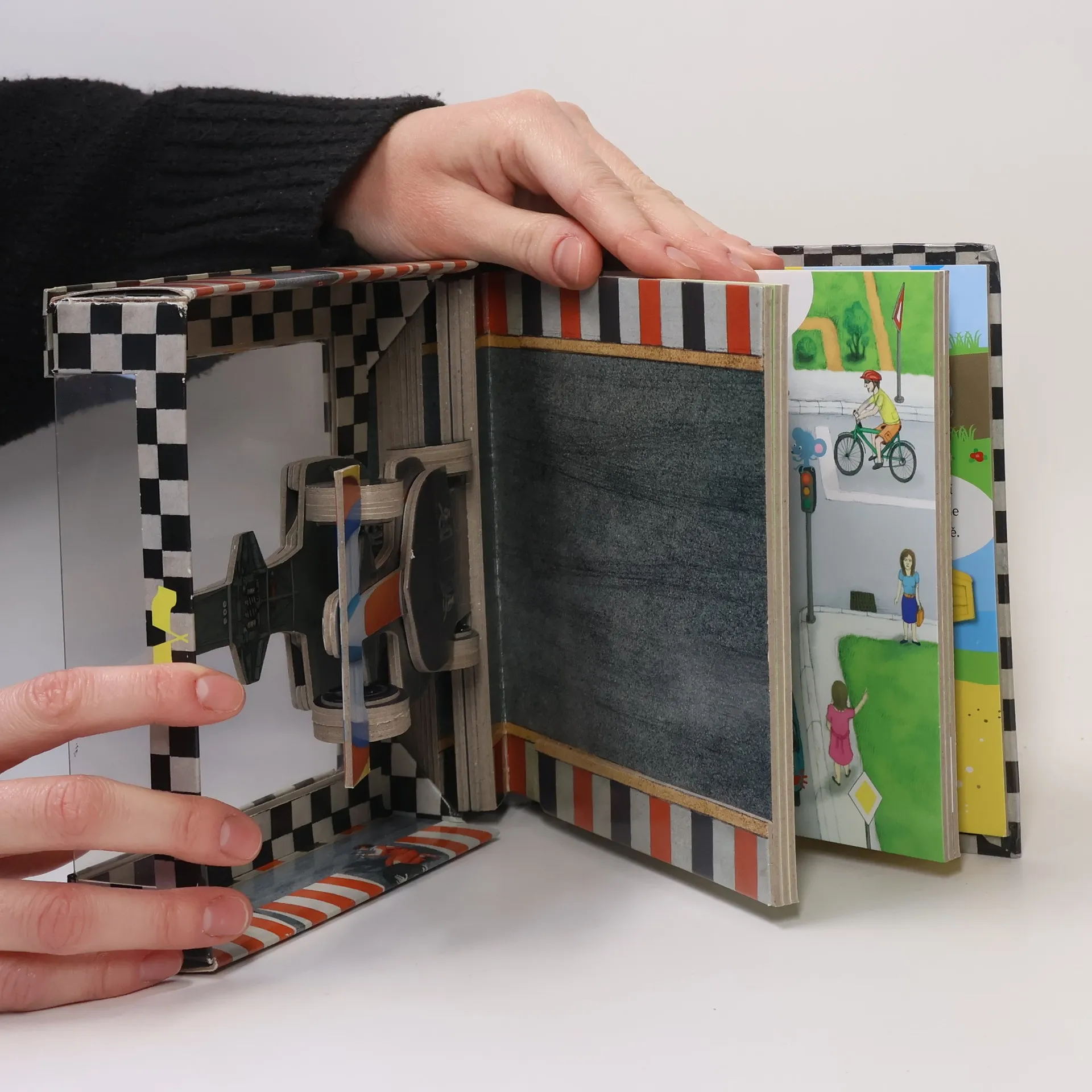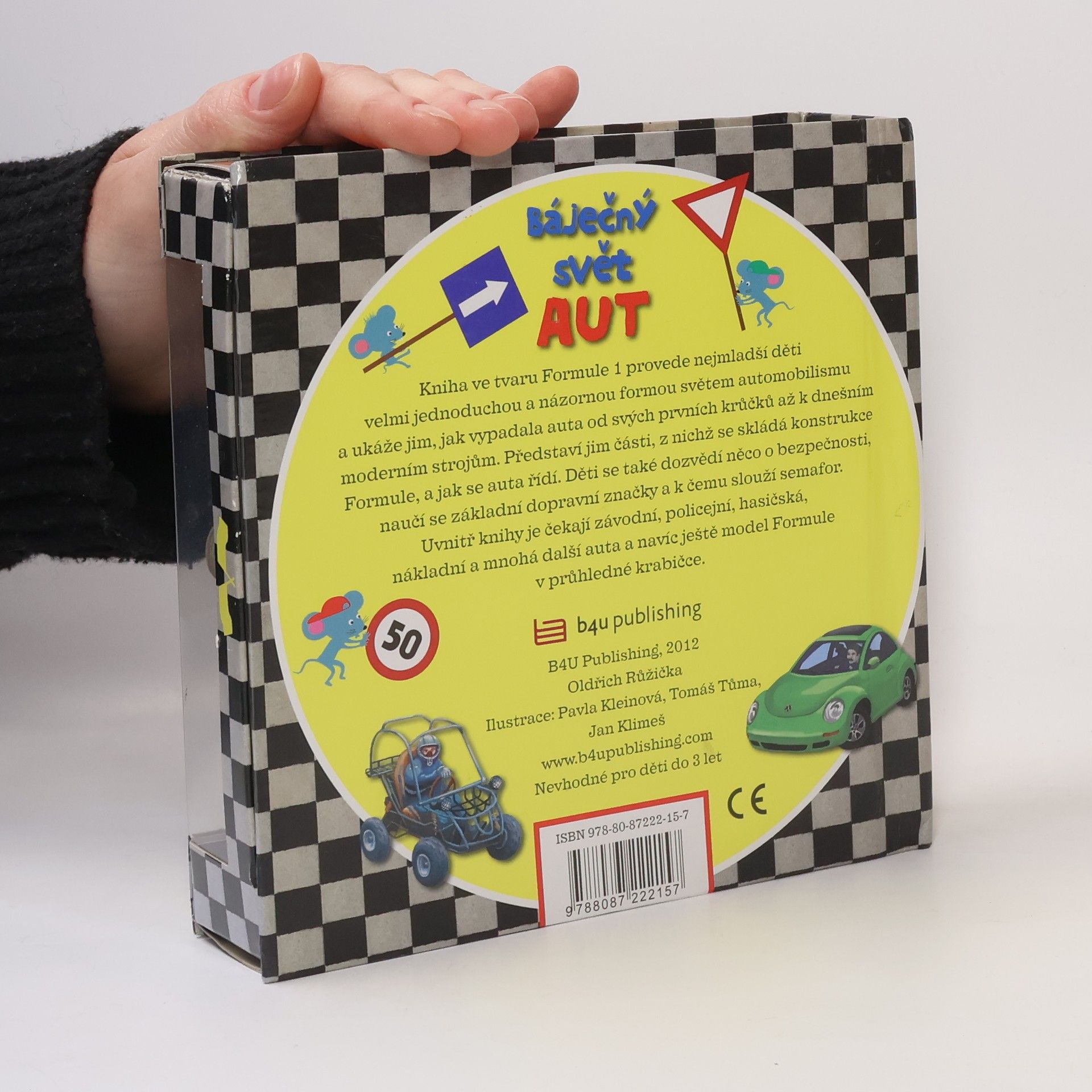 Kniha ve tvaru modelu závodní formule provede děti světem automobilismu a ukáže jim, jak vypadala auta od jejich prvních krůčku až k dnešním moderním strojům. Titul seznámí děti s tím, co se nachází uvnitř automobilu, k čemu vše slouží a k čemu se dnes automobily využívají. V knize si také prohlédnou moderní dopravní stroje nebo závodní auta. Vše jednoduchou a vtipnou formou vhodnou pro tuhle věkovou kategorii čtenáře. Díky nápaditému designu se pod průhlednou obálkou skrývá model formule vytvořený z jednotlivých tvarově vyseknutých stran. Modelem lze navíc listovat, stejně jako zbývajícími stránkami knihy.