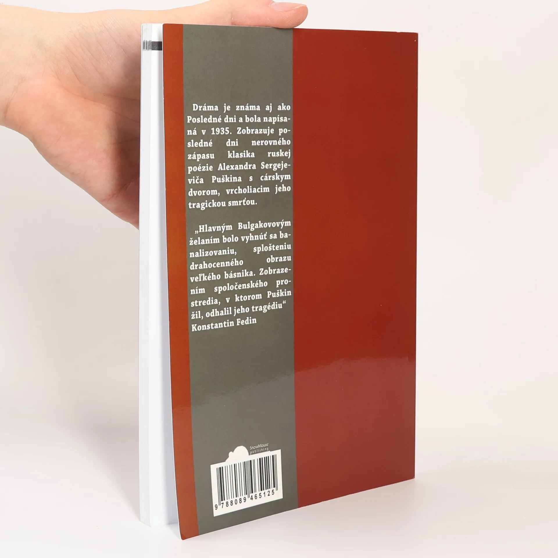 Dráma je známa aj ako Posledné dni a bola napísaná v 1935. Zobrazuje posledné dni nerovného zápasu klasika ruskej poézie Alexandra Sergejeviča Puškina s cárskym dvorom, vrcholiacim jeho tragickou smrťou. „Hlavným Bulgakovovým želaním bolo vyhnúť sa banalizovaniu, splošteniu drahocenného obrazu veľkého básnika. Zobrazením spoločenského prostredia, v ktorom Puškin žil, odhalil jeho tragédiu“ Konstantin Fedin