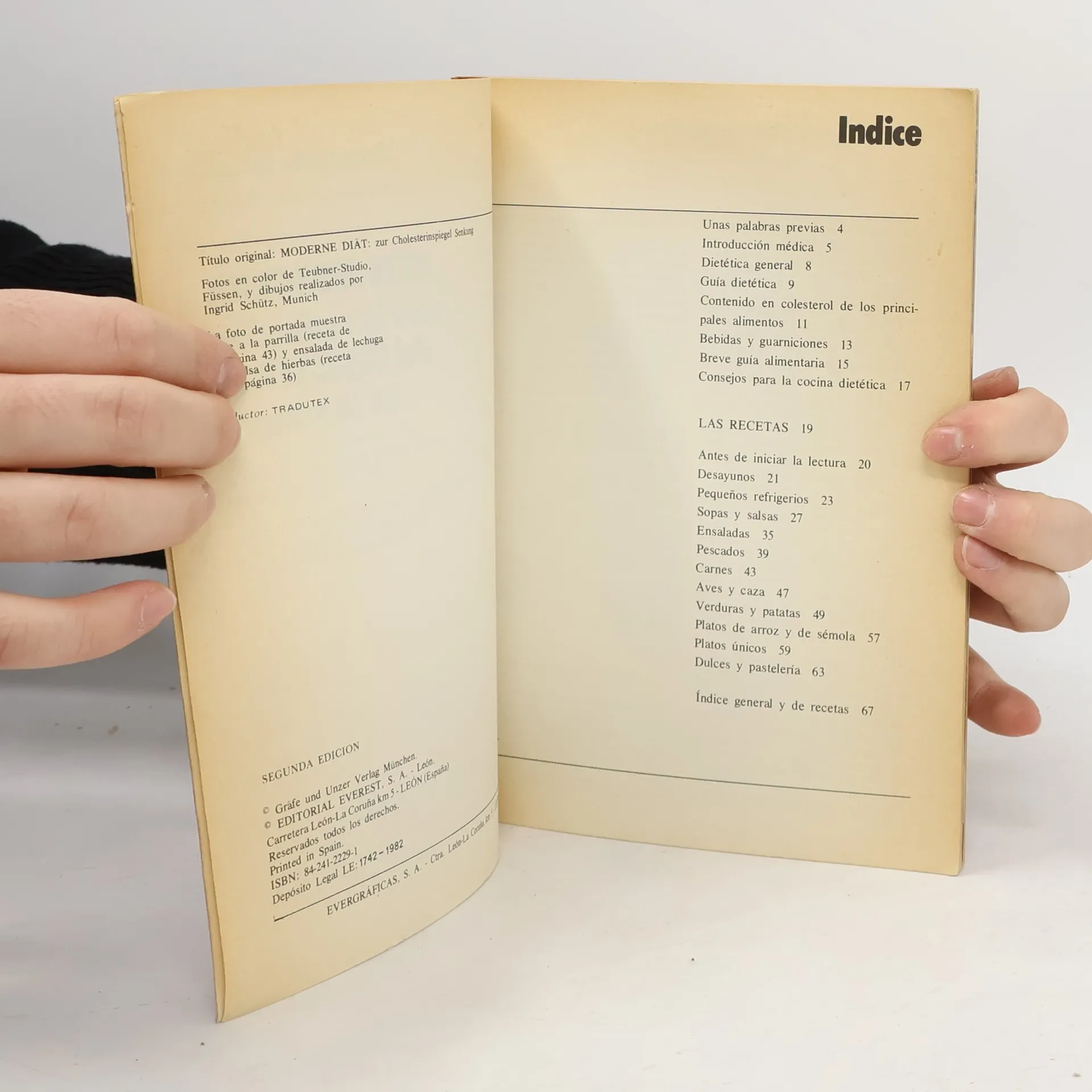 Conforme a las mas recientes investigaciones científicas, las recetas de este libro le permitirán reducir el colesterol en la sangre y los riesgos de una posible enfermedad coronaria o circulatoria a causa de la arterioesclerosis. Fáciles de preparar y con numerosos consejos prácticos para lograr los mejores resultados en cualquier situación. Con platos especiales y sugerencias para guarniciones y especialidades de la cocina integral, y para la adaptación de las recetas a los demás miembros de la familia. Con exactas indicaciones sobre el valor nutritivo de los alimentos y su contenido en calorías, proteínas, grasas, hidratos de carbono y fibra. Magníficas fotografías en color, esquemas, tablas y dibujos explicativos.