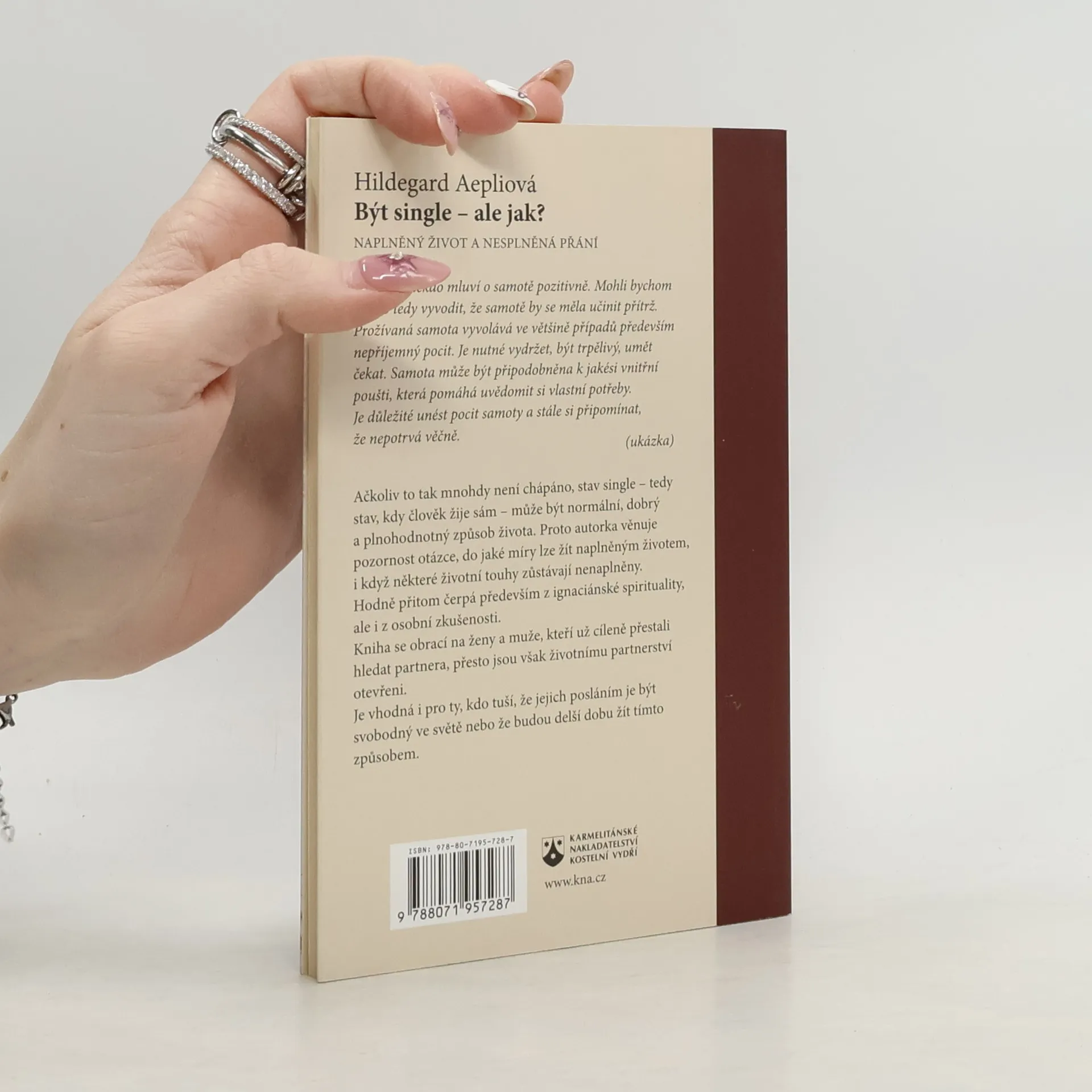 Ačkoliv to tak stále není chápáno, je stav single – tedy stav, kdy člověk žije sám – normální, dobrý a plnohodnotný způsob života. Na základě tohoto předpokladu věnuje Hildegard Aepliová pozornost otázce, do jaké míry existuje naplněný život s nenaplněnými přáními a touhami. Jednotlivé úvahy přitom vždy spojuje se svými osobními zkušenostmi. Kniha nabízí k dané tematice řadu podnětů a cvičení vycházejících z ignaciánské perspektivy.