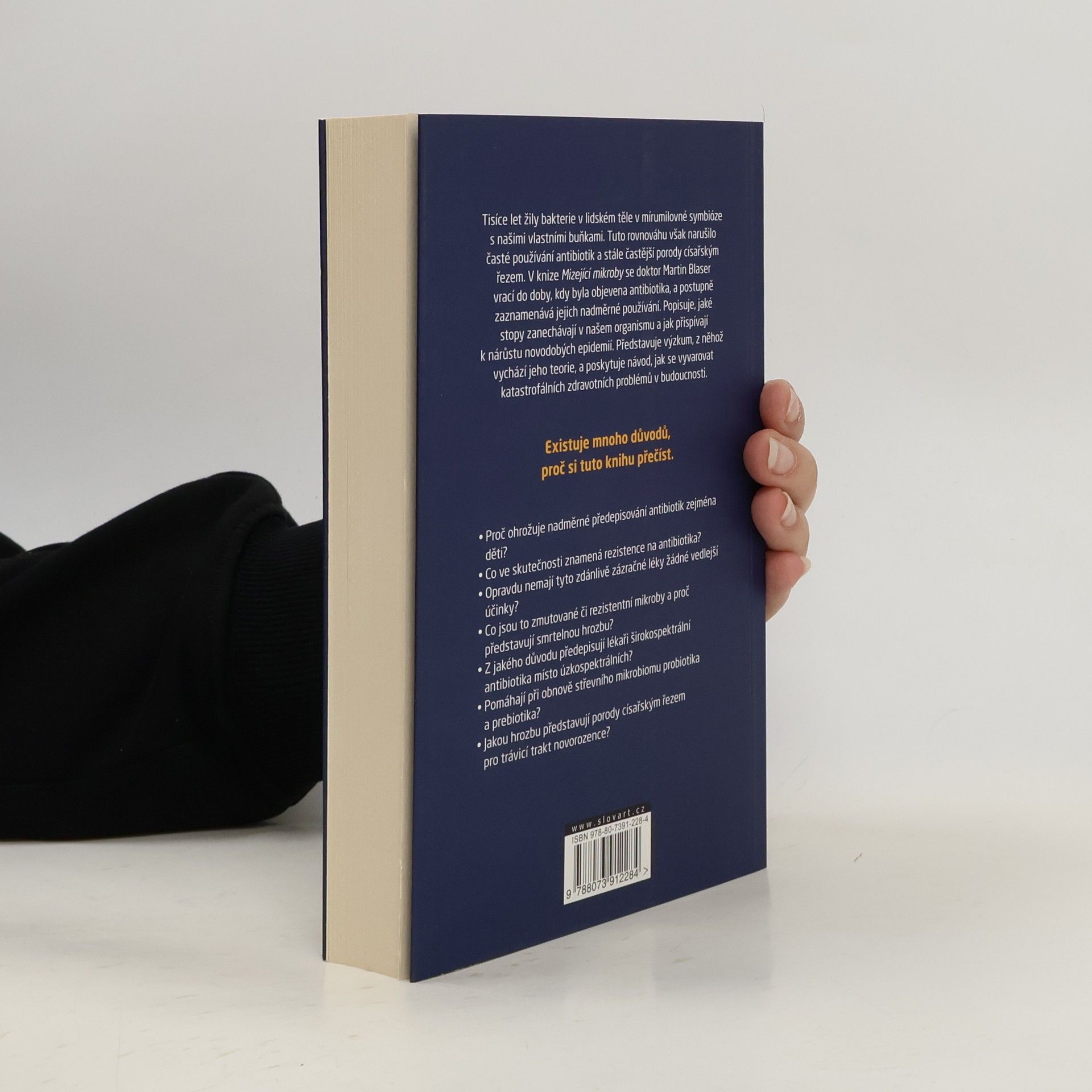 V knize Mizející mikroby se dr. Martin Blaser vrací zpět k objevu antibiotik, který předznamenal zlatý věk lékařství, sleduje, jak následné nadužívání těchto zdánlivě zázračných léků zanechává stopu na našich ústrojích a přispívá ke zvýšenému výskytu obezity, astmatu, alergií, cukrovky a určitých druhů rakoviny, tedy toho, co Blaser nazývá epidemiemi moderní doby. Blaserova pozorování naznačují, že užívání antibiotik v raném dětství představuje největší riziko pro dlouhodobé zdraví, a je až znepokojivé, že americkým dětem je v průměru sedmnáctkrát předepsána léčba antibiotiky, než dosáhnou dvaceti let. O důležitý kontakt s mikrobiomy matek připravuje děti i císařský řez. Blaser nás zavádí do své laboratoře a popisuje průlomové objevy. Poskytuje nejen elegantní důkazy pro svou teorii, ale také nám radí, co můžeme dělat, abychom se vyvarovali ještě tragičtějších dopadů na naše zdraví.