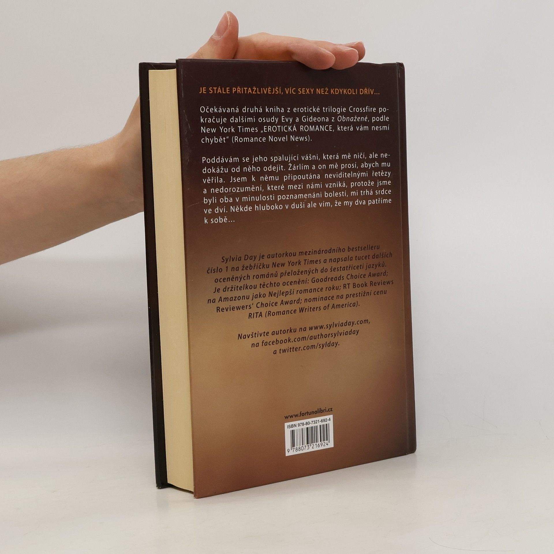 Je stále přitažlivější, víc sexy než kdykoli dřív… Druhá kniha z erotické trilogie Crossfire pokračuje dalšími osudy Evy a Gideona z Obnažené, podle New York Times „EROTICKÁ ROMANCE, která vám nesmí chybět“ (Romance Novel News). Poddávám se jeho spalující vášni, která mě ničí, ale nedokážu od něho odejít. Žárlím a on mě prosí, abych mu věřila. Jsem k němu připoutána neviditelnými řetězy a nedorozumění, které mezi námi vzniká, protože jsme byli oba v minulosti poznamenáni bolestí, mě trhá srdce ve dví. Někde hluboko v duši ale vím, že my dva patříme k sobě…