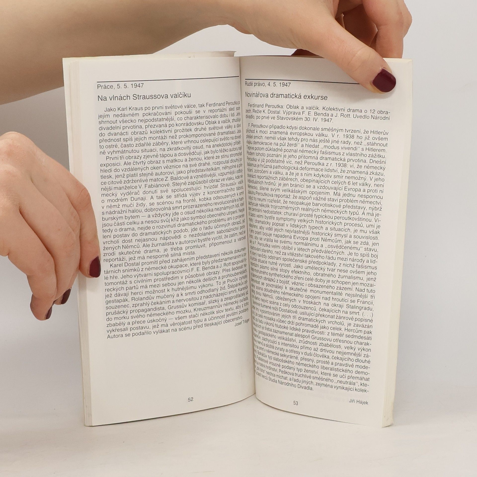 Slova prezidenta Zemana upřela pozornost na osobu možná nejvýznamnějšího českého novináře Ferdinanda Peroutky. Jeho román Oblak a valčík vznikl na základě zkušenosti z věznění v nacistickém koncentračním táboře. Ojedinělý román v české a možná i světové literatuře, který jako málokteré umělecké dílo zobrazuje válku a nacismus, jak se tato dvě spojená zla projevují v lidské existenci. Co dělají s osudy, charaktery a chováním desítek postav, spojených tím, že se ocitly pod ohromným lisem neosobních dějin. Historických románů z druhé světové války je celá řada, ale Peroutka vytvořil něco zvláštního a neopakovatelného: rozpohyboval živé dějiště světa, jež je složeno z vypjatých i obyčejných osudů, které se setkávají v podání velkého ironika. Ten je vede do věznic, káznic, koncentračních táborů, na popraviště i na palebnou linii třeba stalingradských zákopů. Pozoruje je při jejich iluzích, nadějích, zoufalstvích i během jejich smrti. Zobrazuje jejich hanebnost, fanatismus, krutost a zaslepenost. Sklání se před jejich odvahou, zásadovostí i prostou slušností. Je s nimi, a zároveň jako by mu cosi nedovolovalo k nim zcela sestoupit, snad proto, že by to bolestí a lítostí nevydržel.