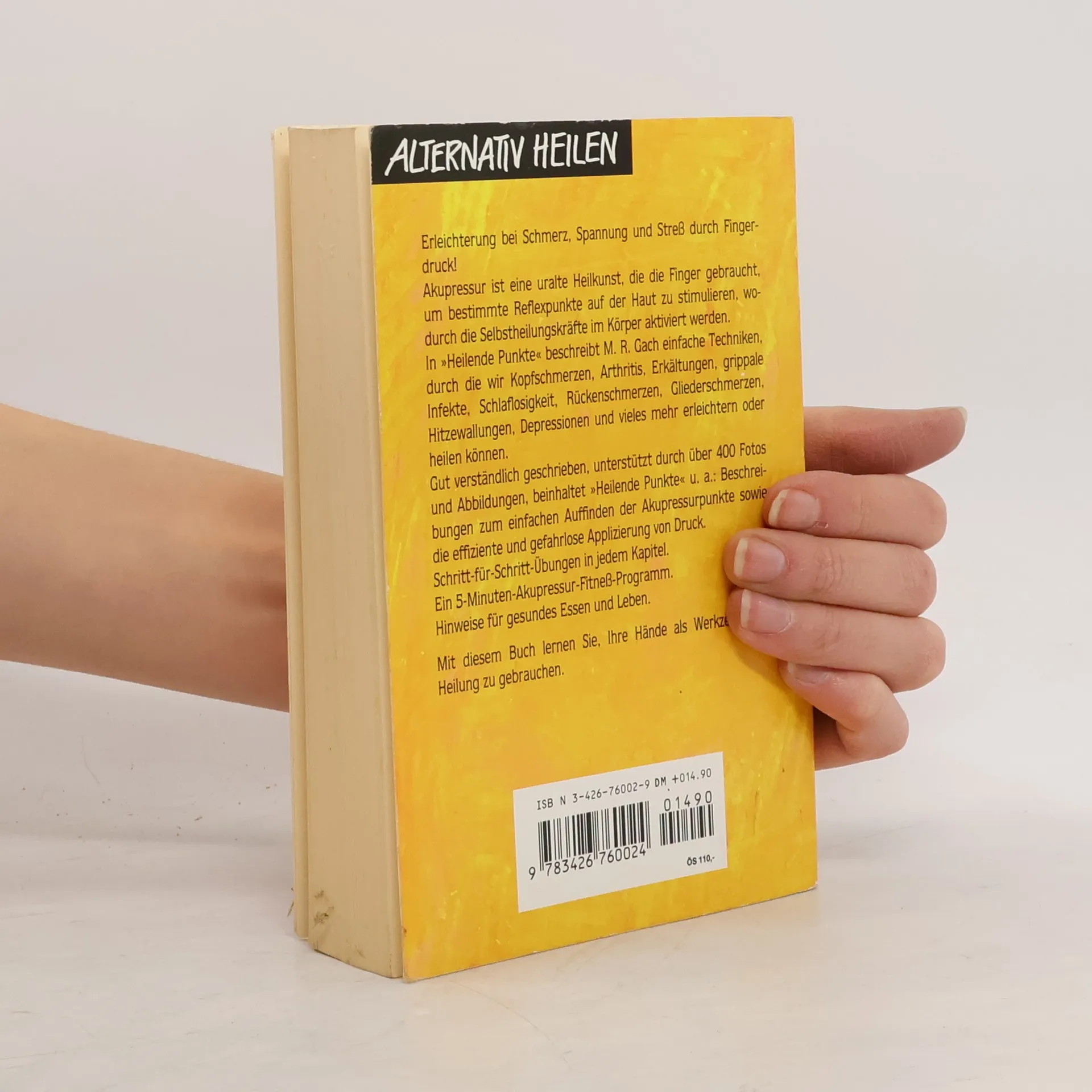 Erleichterung bei Schmerz, Spannung und Streß durch Fingerdruck! Akupressur ist eine uralte Heilkunst, die die Finger gebraucht, um bestimmte Reflexpunkte auf der Haut zu stimulieren, wodurch die Selbstheilungskräfte im Körper aktiviert werden. In »Heilende Punkte« beschreibt M. R. Gach einfache Techniken, durch die wir Kopfschmerzen, Arthritis, Erkältungen, grippale Infekte, Schlaflosigkeit, Rückenschmerzen, Gliederschmerzen, Hitzewallungen, Depressionen, und vieles mehr erleichtern oder heilen können. Gut verständlich geschrieben, unterstützt durch über 400 Fotos und Abbildungen, beinhaltet »Heilende Punkte« u. a.: Beschreibungen zum einfachen Auffinden der Akupressurpunkte sowie die effiziente und gefahrlose Applizierung von Druck. Schritt-für-Schritt-Übungen in jedem Kapitel. Ein 5-Minuten-Akupressur-Fitneß-Programm. Hinweise für gesundes Essen und Leben. Mit diesem Buch lernen Sie, Ihre Hände als Werkzeuge zur Heilung zu gebrauchen.