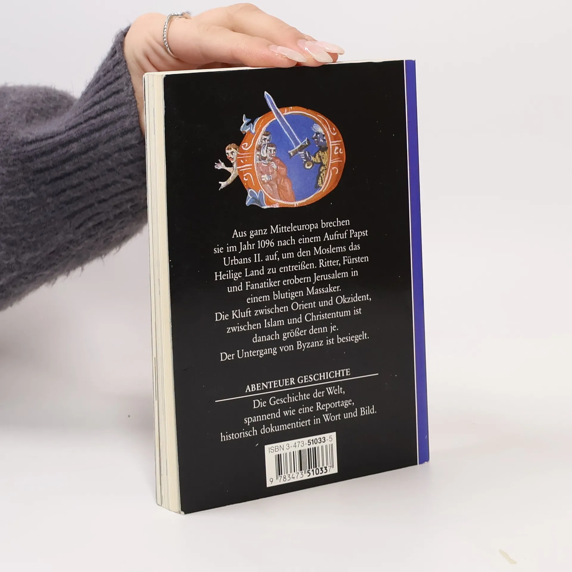 Aus ganz Mitteleuropa brechen sie im Jahre 1096 nach einem Aufruf Papst Urbans II. auf, um den Moslems das Heilige Land zu entreißen. Ritter, Fürsten und Fanatiker erobern Jerusalem in einem blutigen Massaker. Die Kluft zwischen Orient und Okzident, zwischen Islam und Christentum ist danach größer denn je. Der Untergang von Byzanz ist besiegelt. Abenteuer Geschichte. Die Geschichte der Welt, spannend wie eine Reportage, historisch dokumentiert in Wort und Bild.