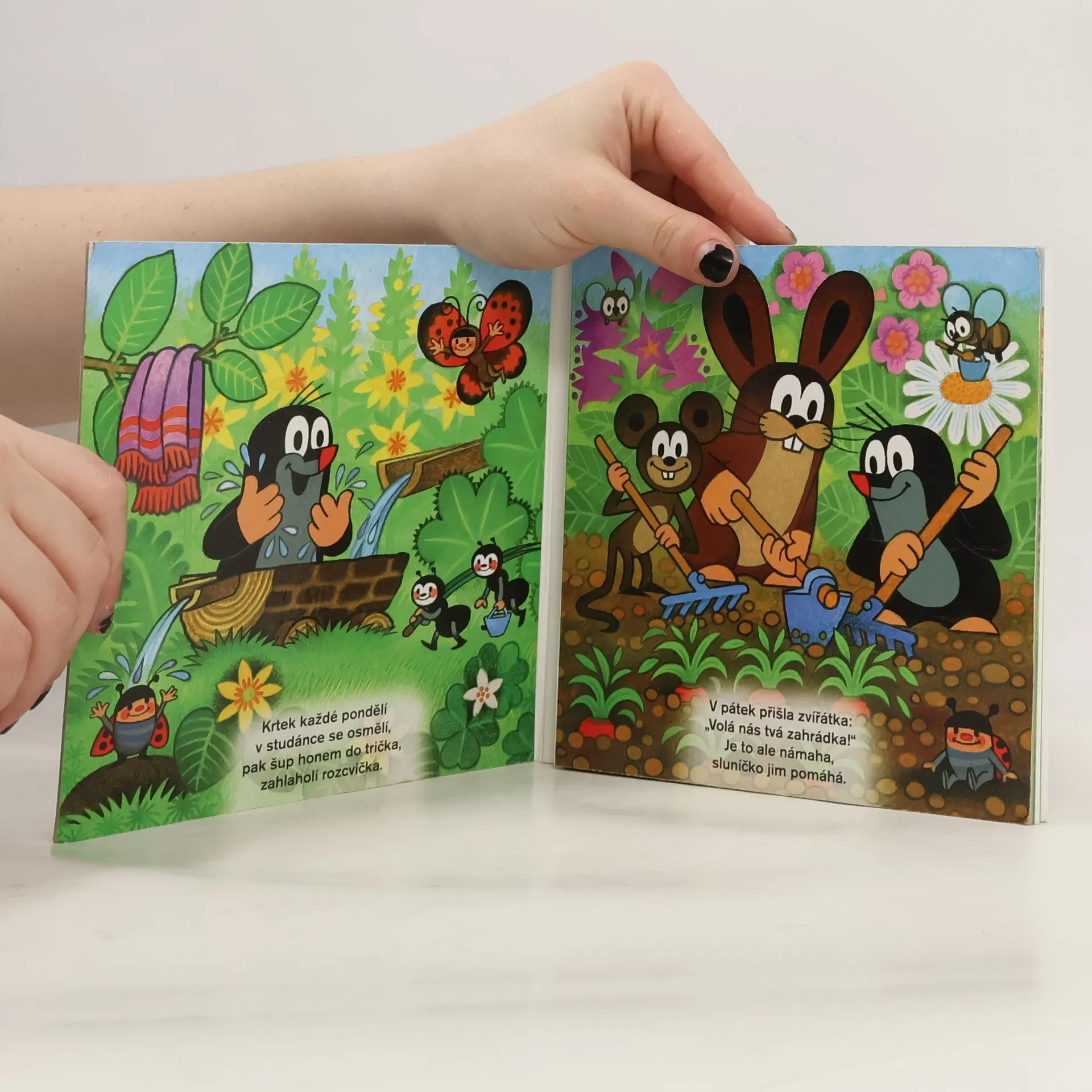 Leporelo s obrázky Zdeňka Milera. Oblíbené leporelo hravou formou seznamuje děti s jednotlivými dny týdne. Krtek se v pondělí pouští do práce tak, aby ji v pátek dokončil a přes sobotu a neděli si mohl užívat volných dnů. „A když máme neděli, je dobré být s přáteli. Krtek vlezl na krtinu: Přijďte ke mně na hostinu!“ Dítě se s pomocí krásných ilustrací a hravých veršů snadno naučí, jak následují jednotlivé dny v týdnu za sebou a čím jsou pro většinu lidí zajímavé.