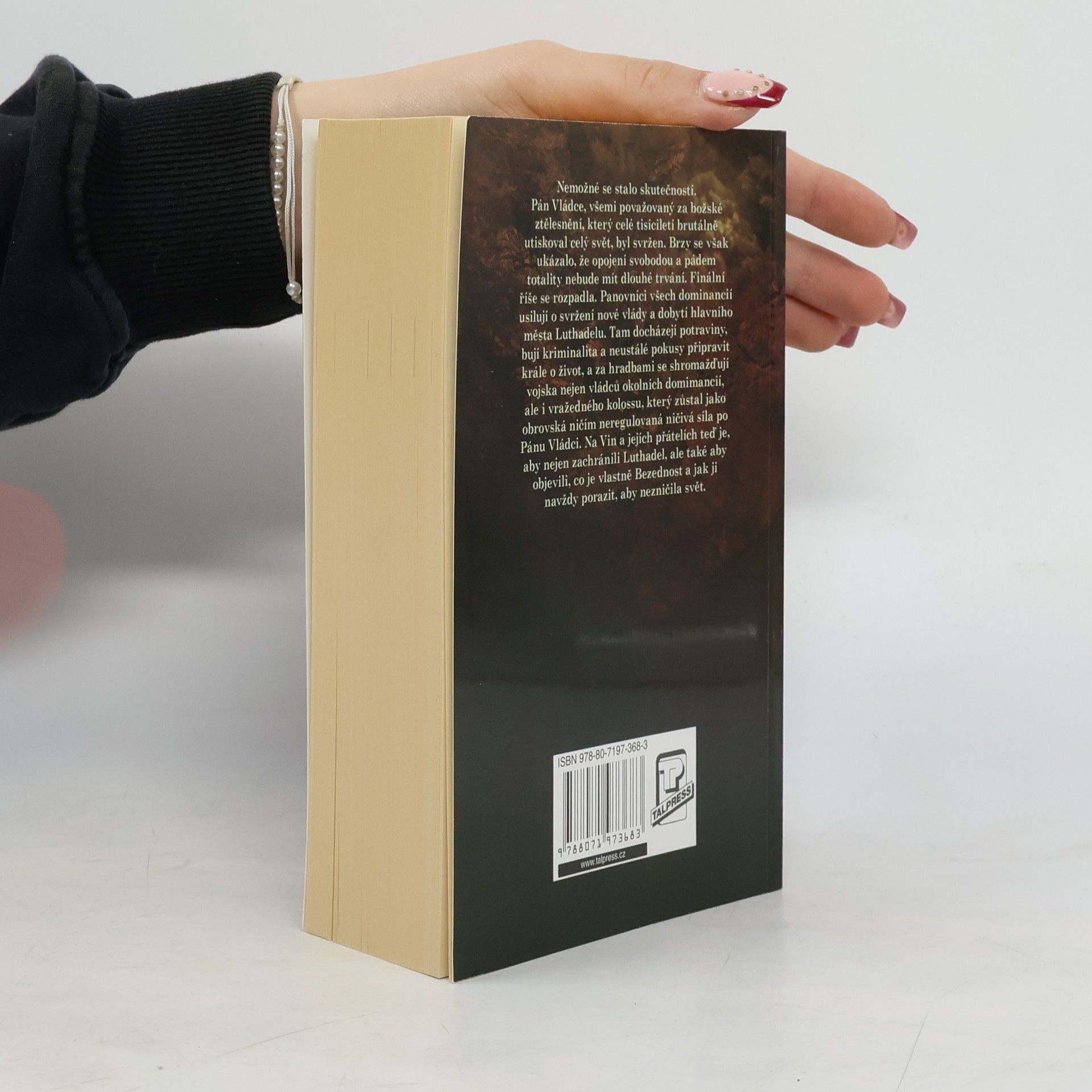 Nemožné se stalo skutečností. Pán Vládce, všemi považovaný za božské ztělesnění, který celé tisíciletí brutálně utiskoval celý svět, byl svržen. Brzy se však ukázalo, že opojení svobodou a pádem totality nebude mít dlouhé trvání. Finální říše se rozpadla. Panovníci všech dominancií usilují o svržení nové vlády a dobytí hlavního města Luthadelu. Tam docházejí potraviny, bují kriminalita a neustálé pokusy připravit krále o život, a za hradbami se shromažďují vojska nejen vládců okolních domimancií, ale i vražedného kolossu, který zůstal jako obrovská ničím neregulovaná ničivá síla po Pánu Vládci... Na Vin a jejích přátelích teď je, aby nejen zachránili Luthadel, ale také aby objevili, co je vlastně Bezednost a jak ji navždy porazit, aby nezničila svět.